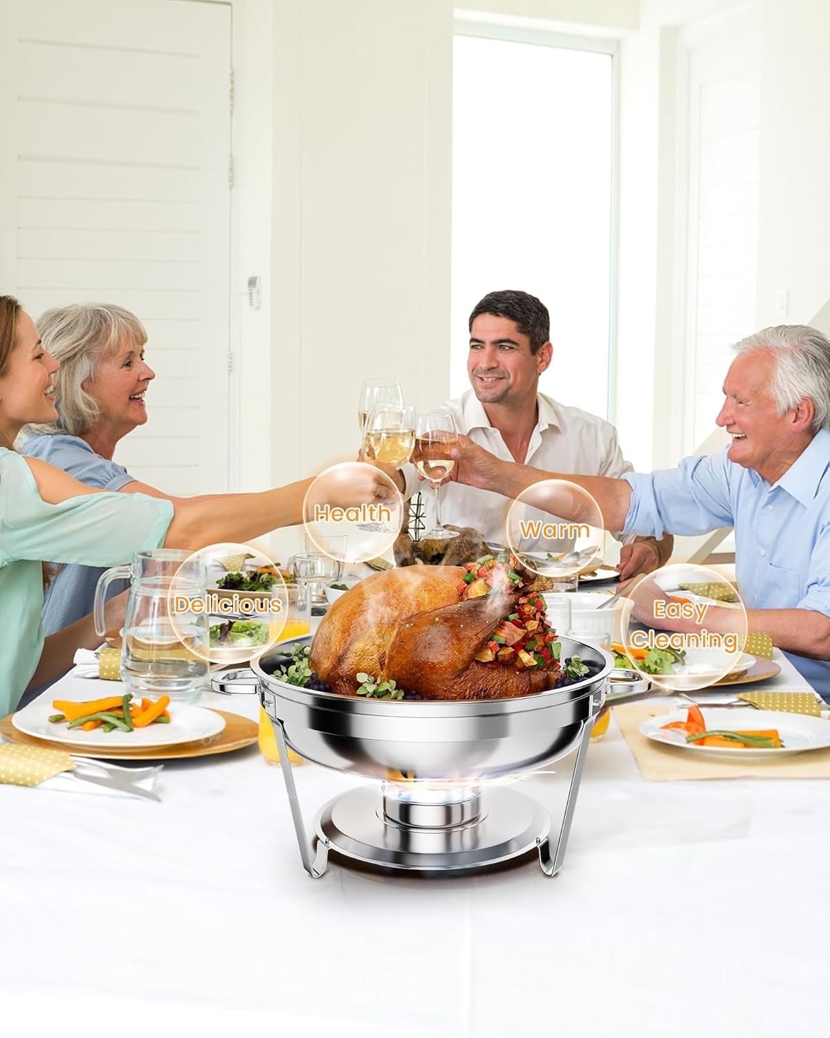- Package Contains and More Delicious: With a 5L capacity, the chafing dish buffet set can accommodate a significant amount of food.Whether it's main courses, side dishes, or soups, it can easily accommodate them, making it suitable for various occasions such as family dinners, parties, weddings, etc. The sufficient capacity reduces the trouble of adding food frequently, ensuring that guests always have enough delicious food to enjoy.
