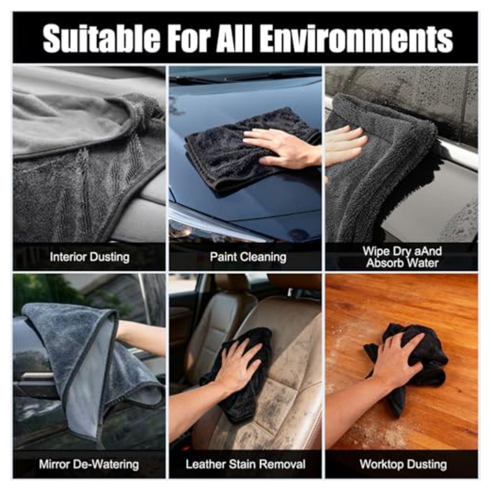 * Nettoyage sans tache : la conception unique à double face dispose d'une microfibre à poils longs hautement absorbante d'un côté pour le séchage, tandis que l'autre côté utilise un tissu en maille idéal pour polir les surfaces sans laisser de stries ou de peluches.