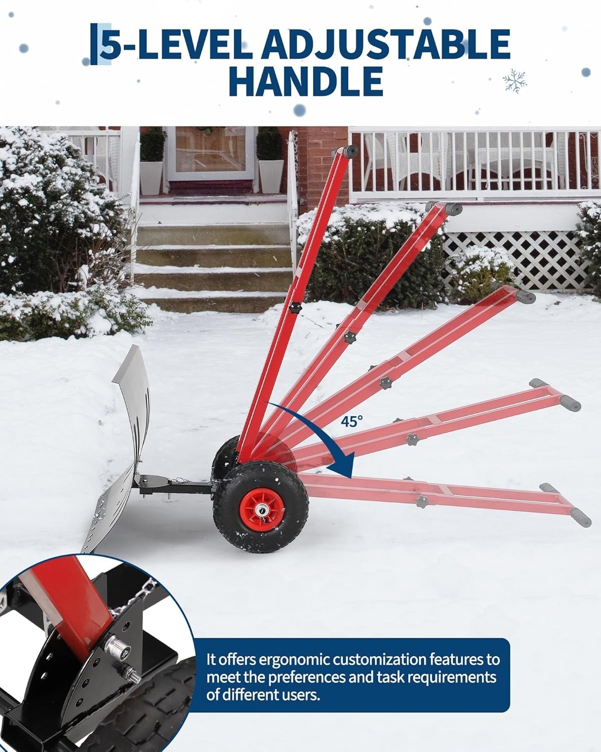 Stable Traction, Safe & Smooth Rolling: Outfitted with two 10-inch anti-slip inflatable tires, this snow plow glides over ice and snow while maintaining secure traction. Roll confidently across slippery surfaces, preventing slips and ensuring every snow removal job is safe and hassle-free
