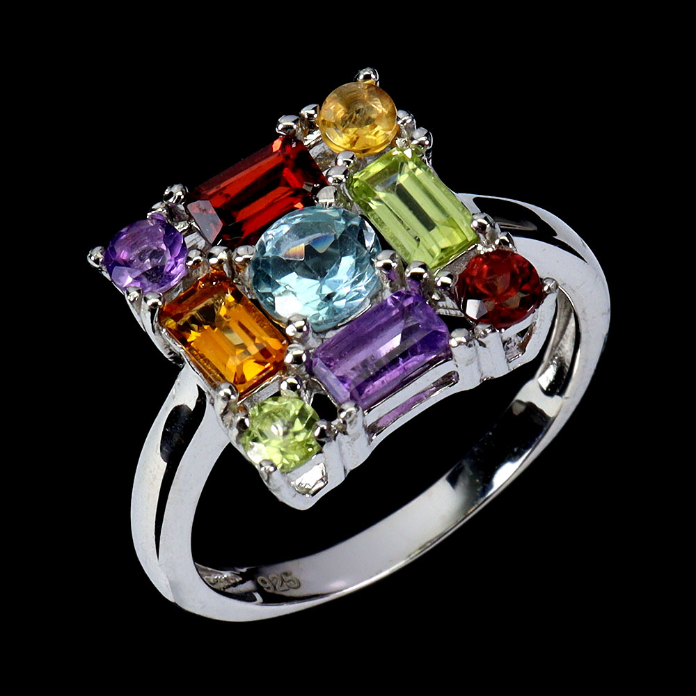 Amethyst, Mozambique Garnet, Peridot, Sky Blue Topaz