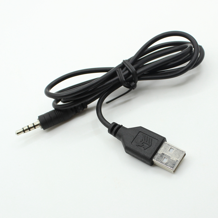USB to 3.5mm audio headphone jack cable.
