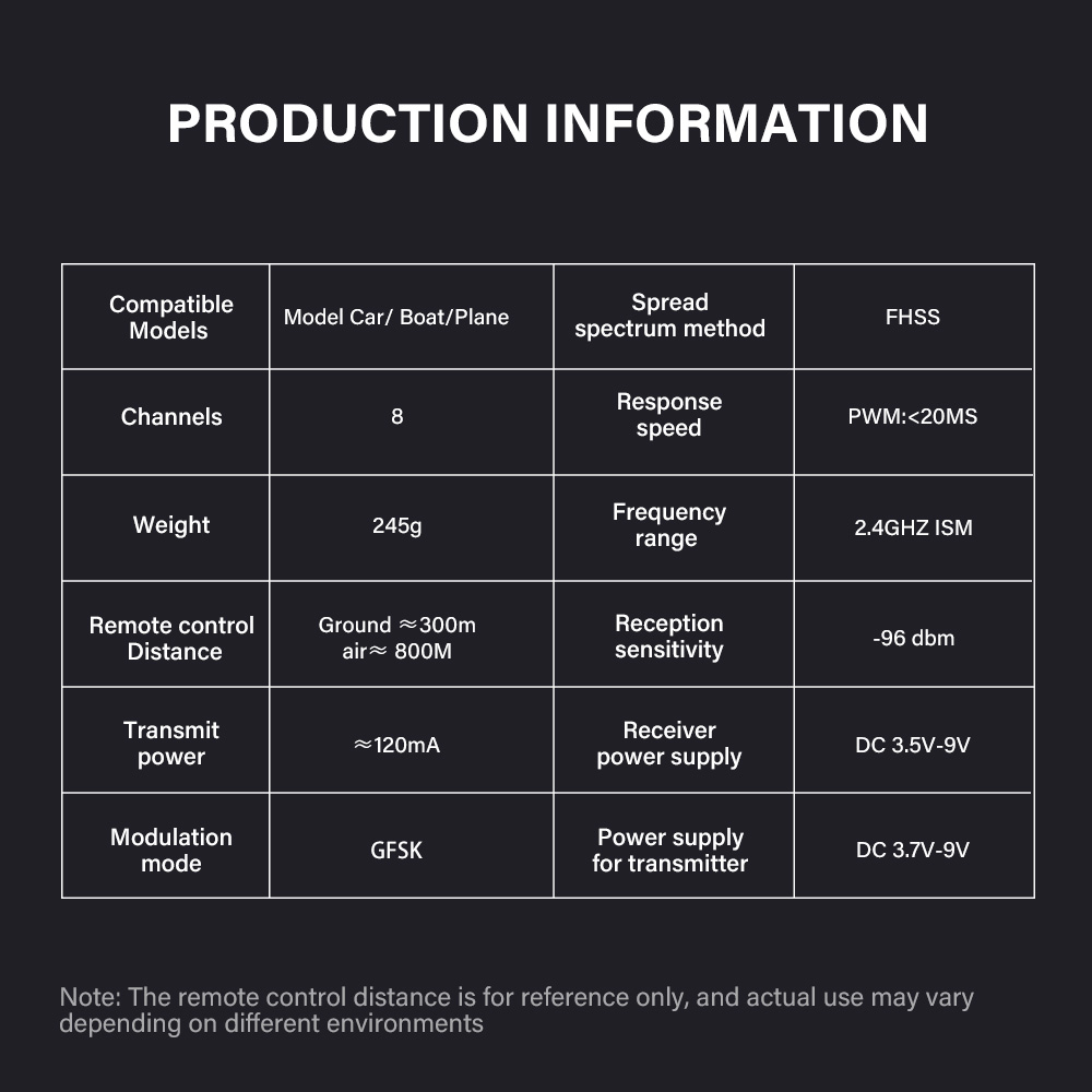 RC Distance: Ground about 300m/Air 800m