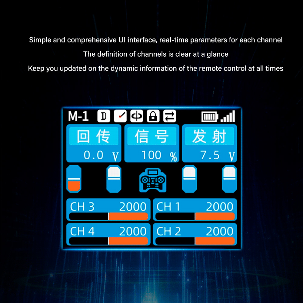 1. 1.7-inch color screen 8-way remote control receiver with standard return function