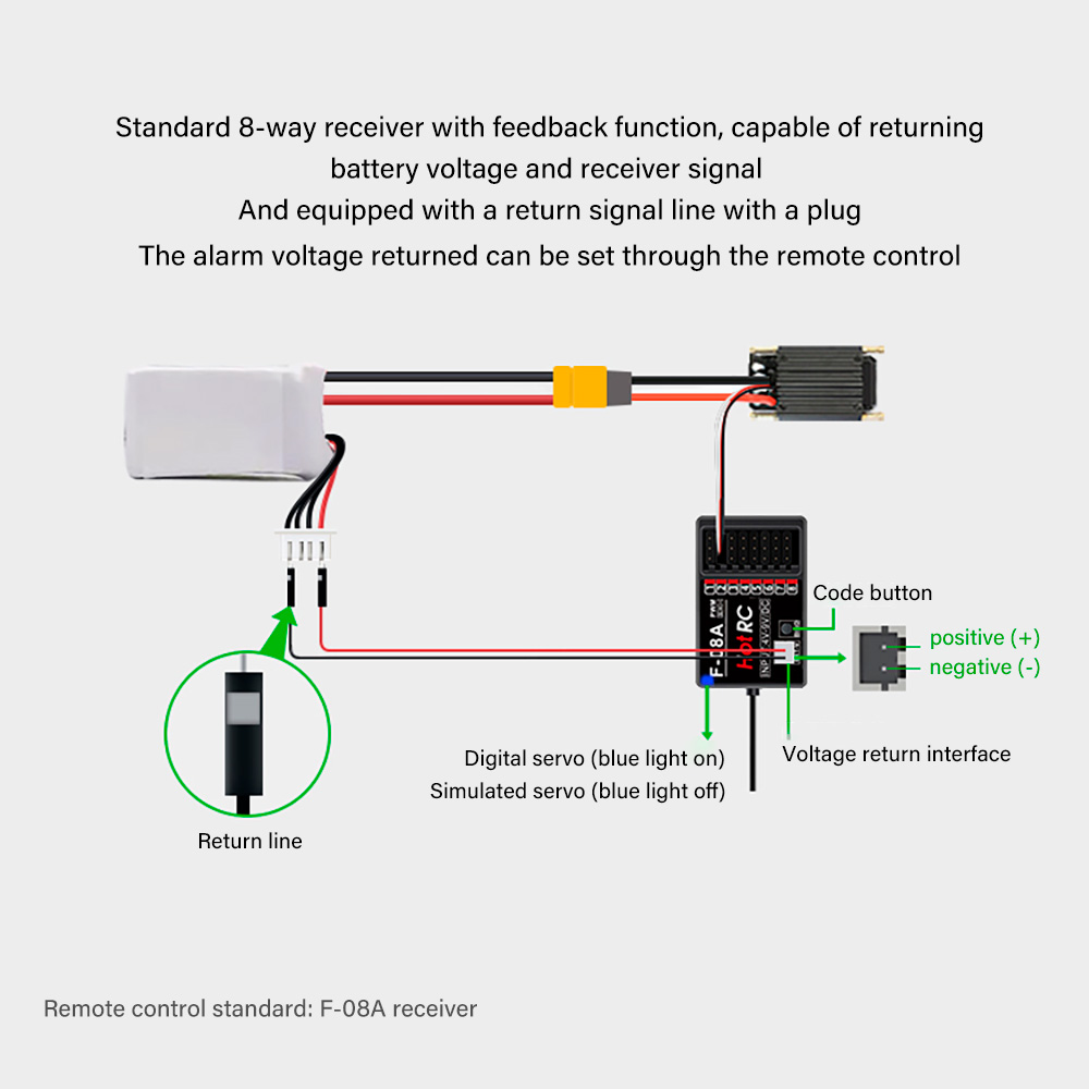 8. Standard 8-way receiver with feedback function, capable of returning battery voltage and receiver signal