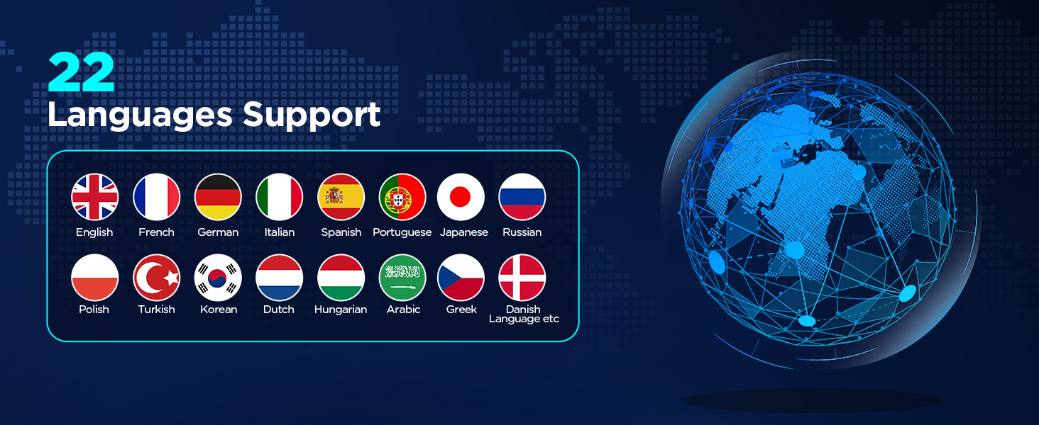 Supports 22+ Languages :