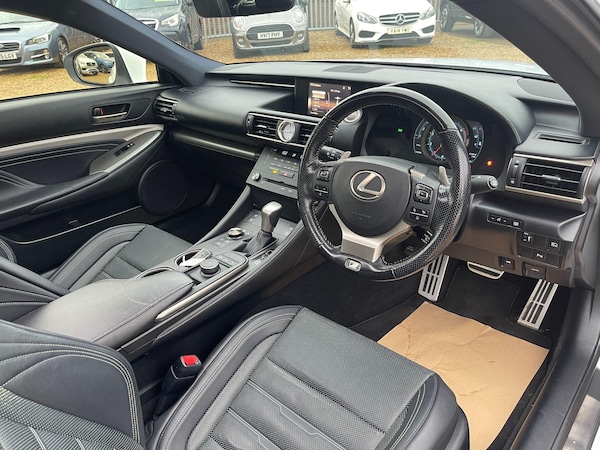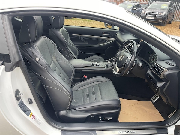 An exceptional Lexus RC 2.0T F Sport Auto finished to a superb standard throughout, boasting a full and up-to-date Lexus main dealer service history and a great specification including sunroof, full leather interior, satellite navigation, reversing camera, heated and ventilated seats, and F Sport styling.This example has clearly been cherished, with every service carried out by Lexus main dealers as follows:25/09/17 3,888 miles (Lexus Leicester)18/09/18 7,513 miles (Lexus Leicester)10/09/19 12,422 miles (Lexus Leicester)01/09/20 16,106 miles (Lexus Leicester)02/09/21 19,267 miles (Lexus Leicester)15/07/22 21,215 miles (Lexus Lincoln)23/06/23 26,010 miles (Lexus Lincoln)25/04/25 38,353 miles (Lexus Lincoln)Drives beautifully with silky-smooth performance and typical Lexus reliability.A rare opportunity to own one of these stunning F Sport coupes with such an impeccable main dealer record and sought-after pan roof.Supplied with two keys, book pack, and full service record.