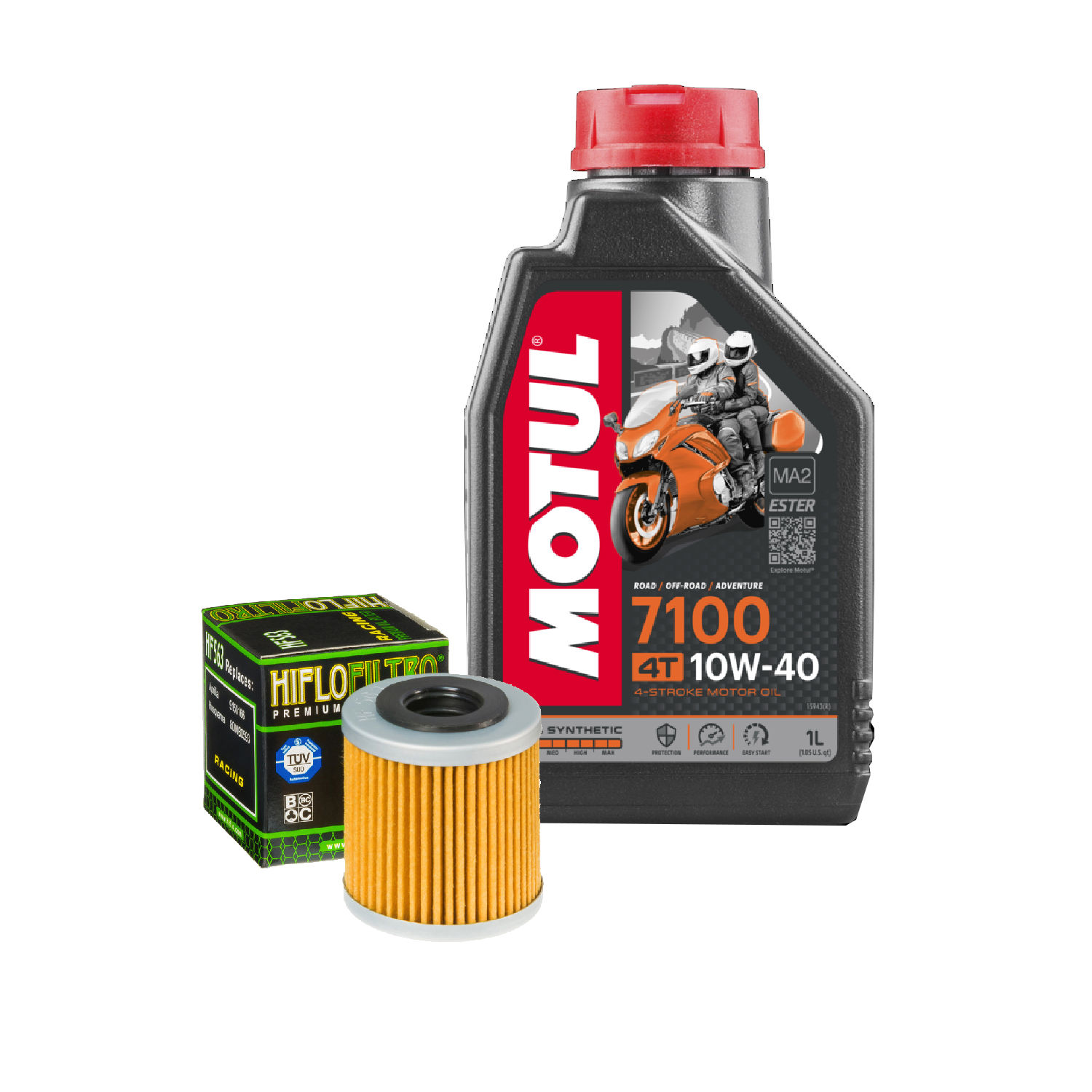 KIT D'ENTRETIEN MOTO 1 LITRE HUILE MOTUL 7100 10W40 + FILTRE À HUILE HIFLO HF563
