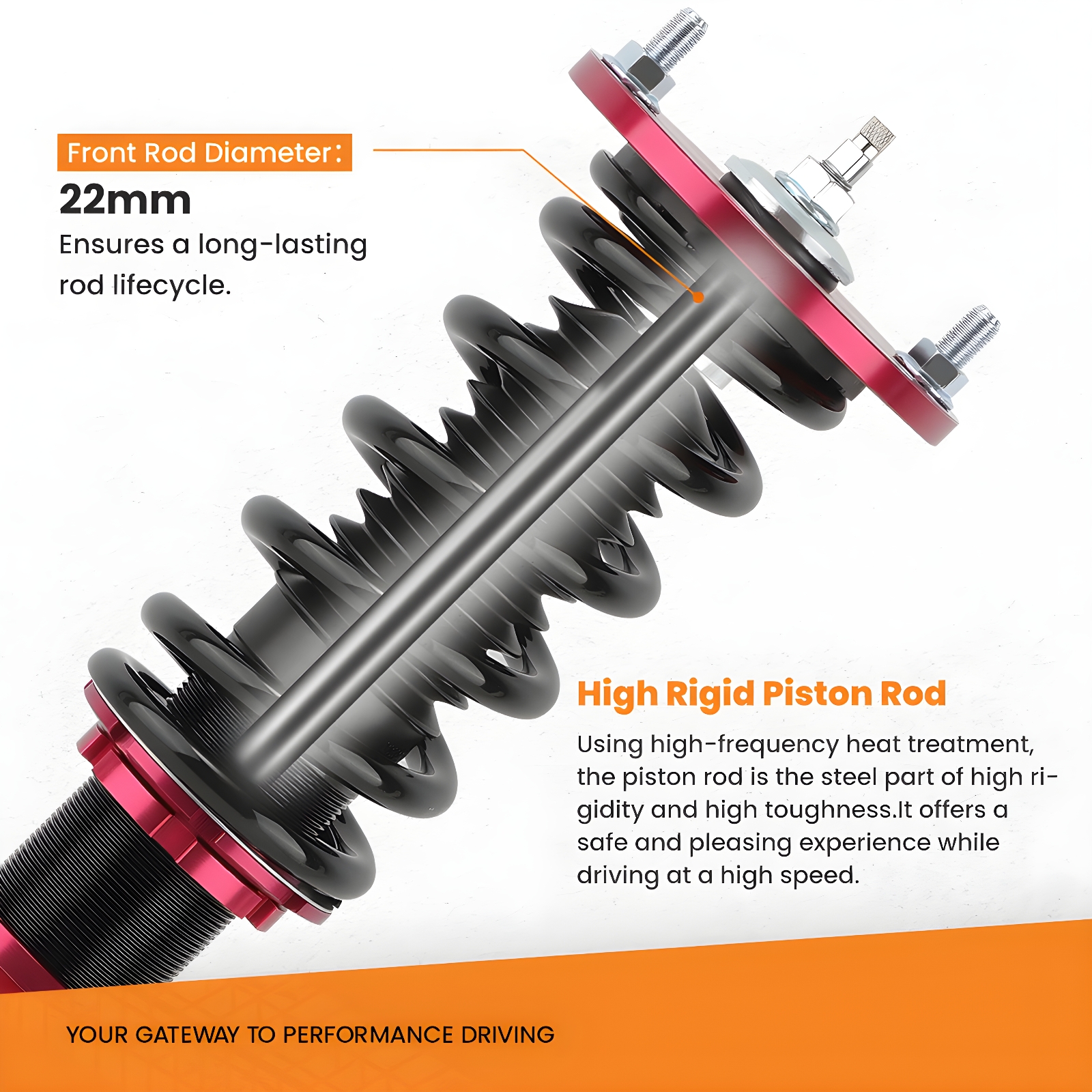2. A 24 rebound damping adjustment level allows you the ability to perfectly dial in your coilover setup. You will experience better ride quality in all road conditions.