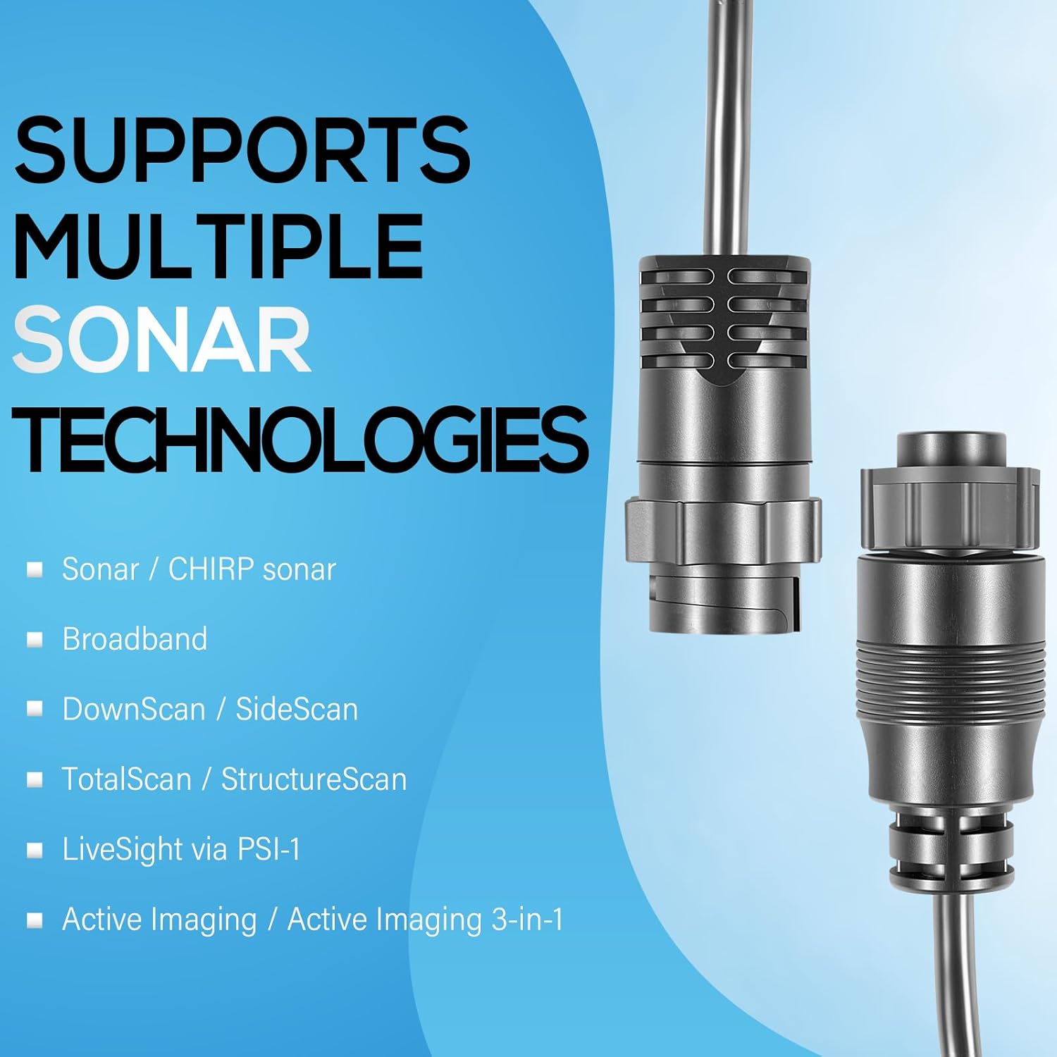 And will support Sonar/ CHIRP sonar, Broadband, DownScan / SideScan, TotalScan / StructureScan, LiveSight via PSI-1, Active Imaging / Active Imaging 3-in-1