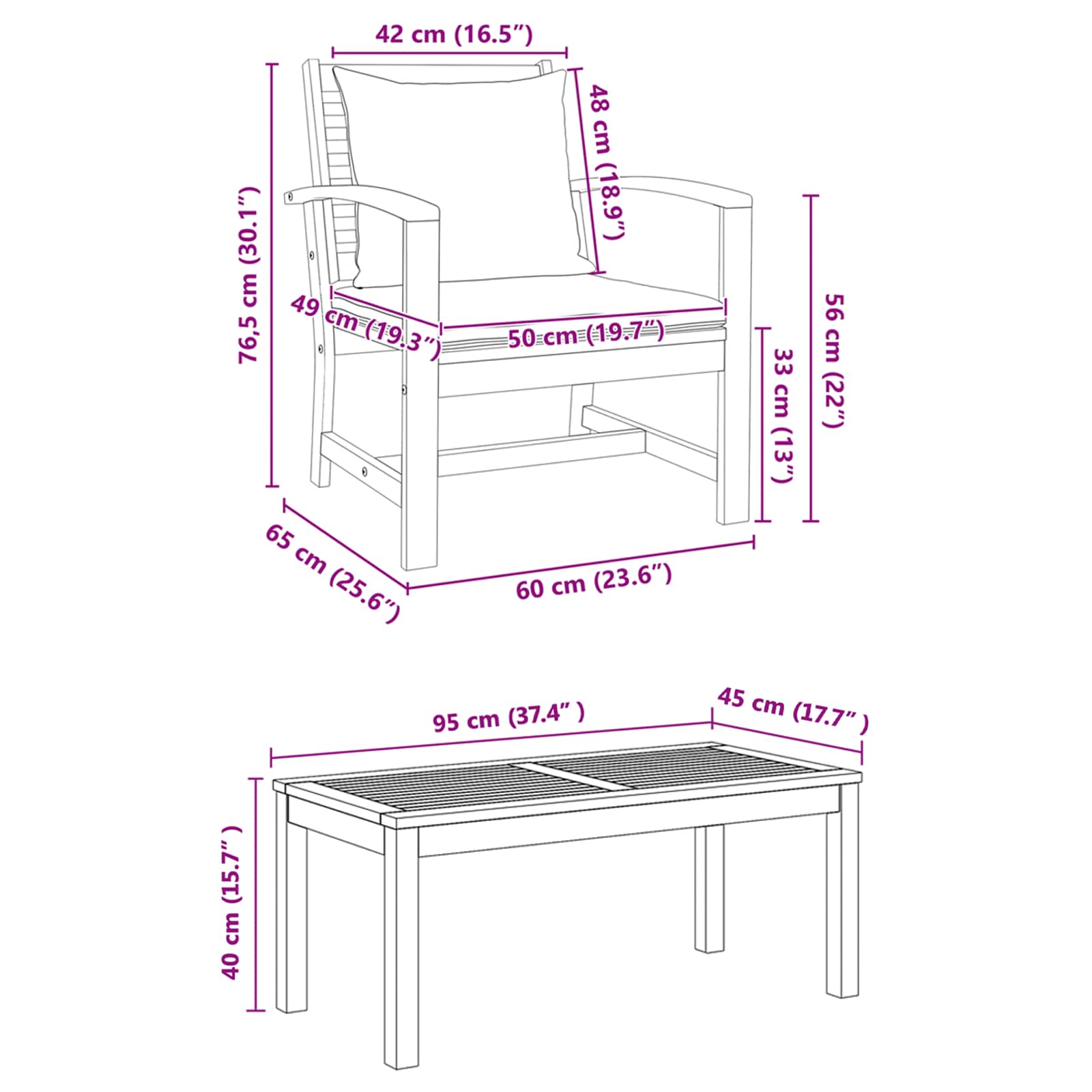 1 x Table : 95 x 45 x 40 cm (LxWxH)