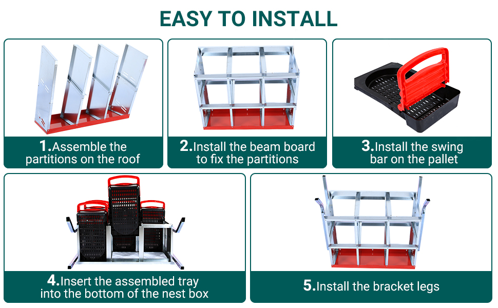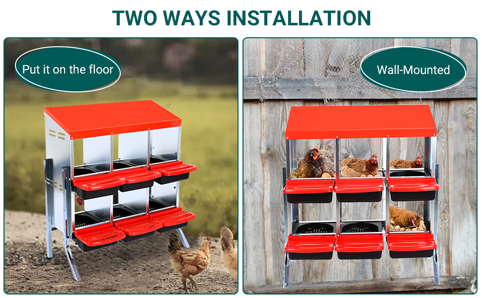 [ VENTILATED STRUCTURE] Sturdy Construction: Built with galvanized steel on the sides and roof, this nesting boxes for chickens offers well-ventilated structure. The ventilation holes provide fresh air for the chickens, while the plastic tray is rust-resistant and easy to clean, ensuring optimal hygiene and longevity.