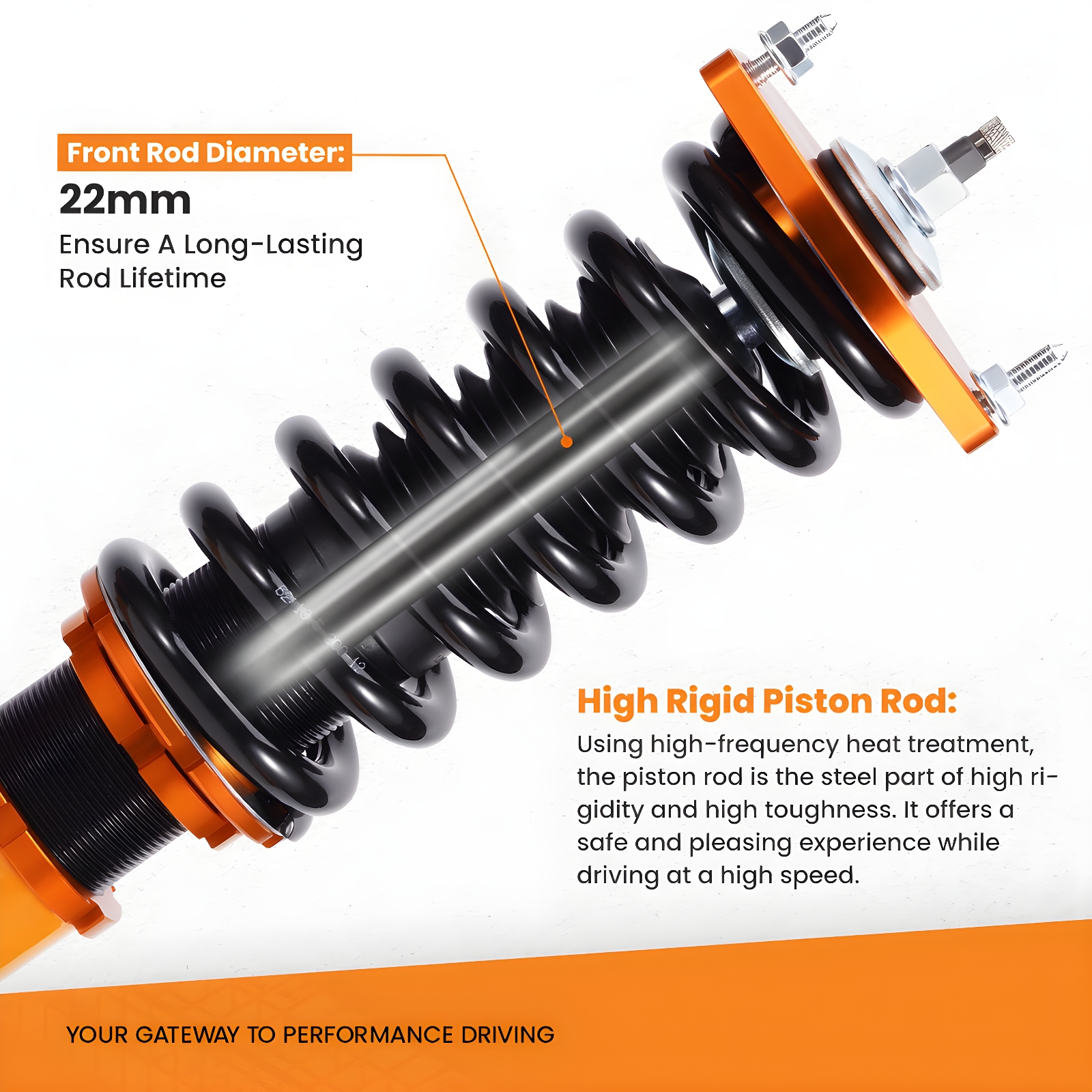 1. Lowered height adjustment from 25-75mm (depends on vehicle models) which allows a lower center of gravity and also adds a more aggressive stance