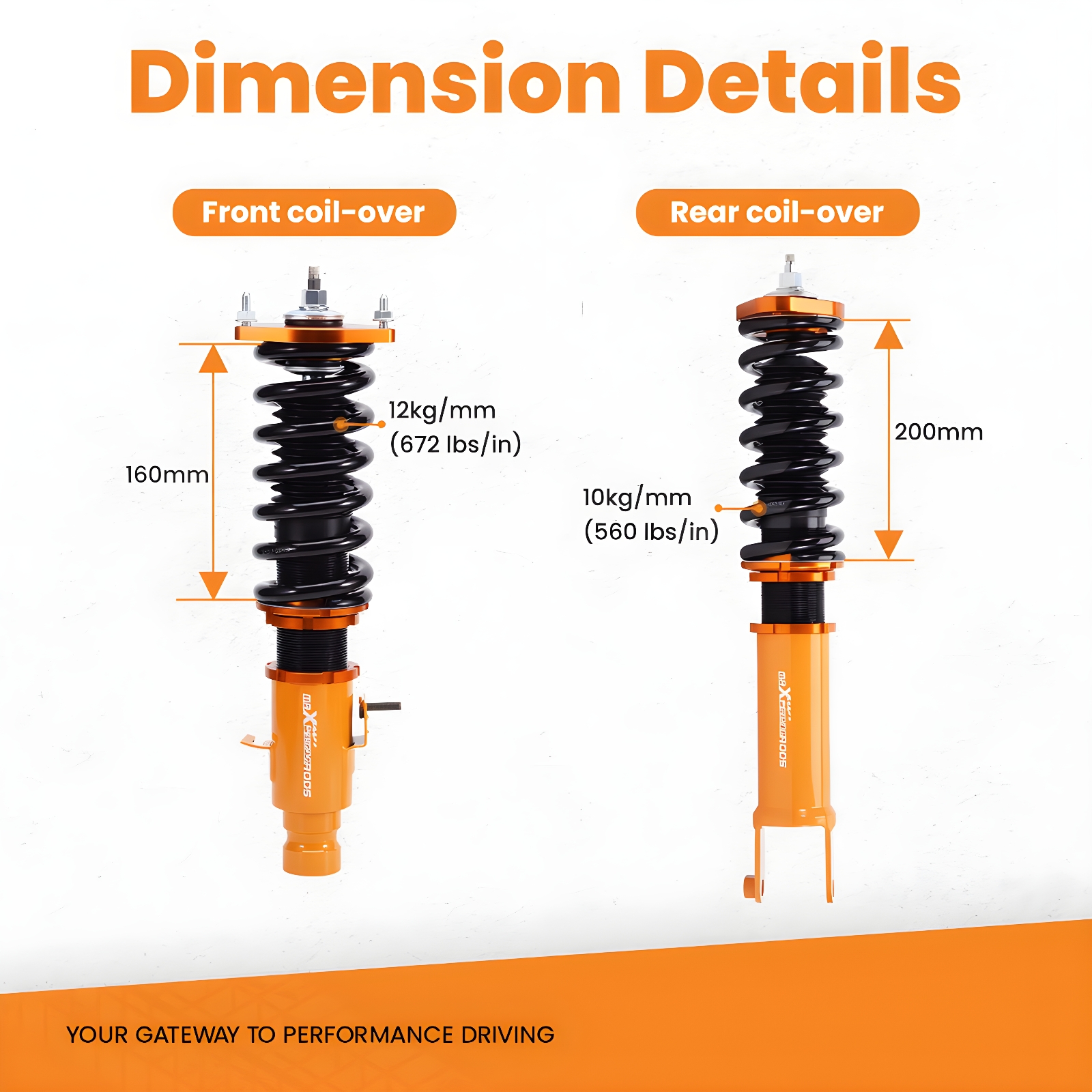 Spring Rate Front 12kg/mm (672 lbs/in)