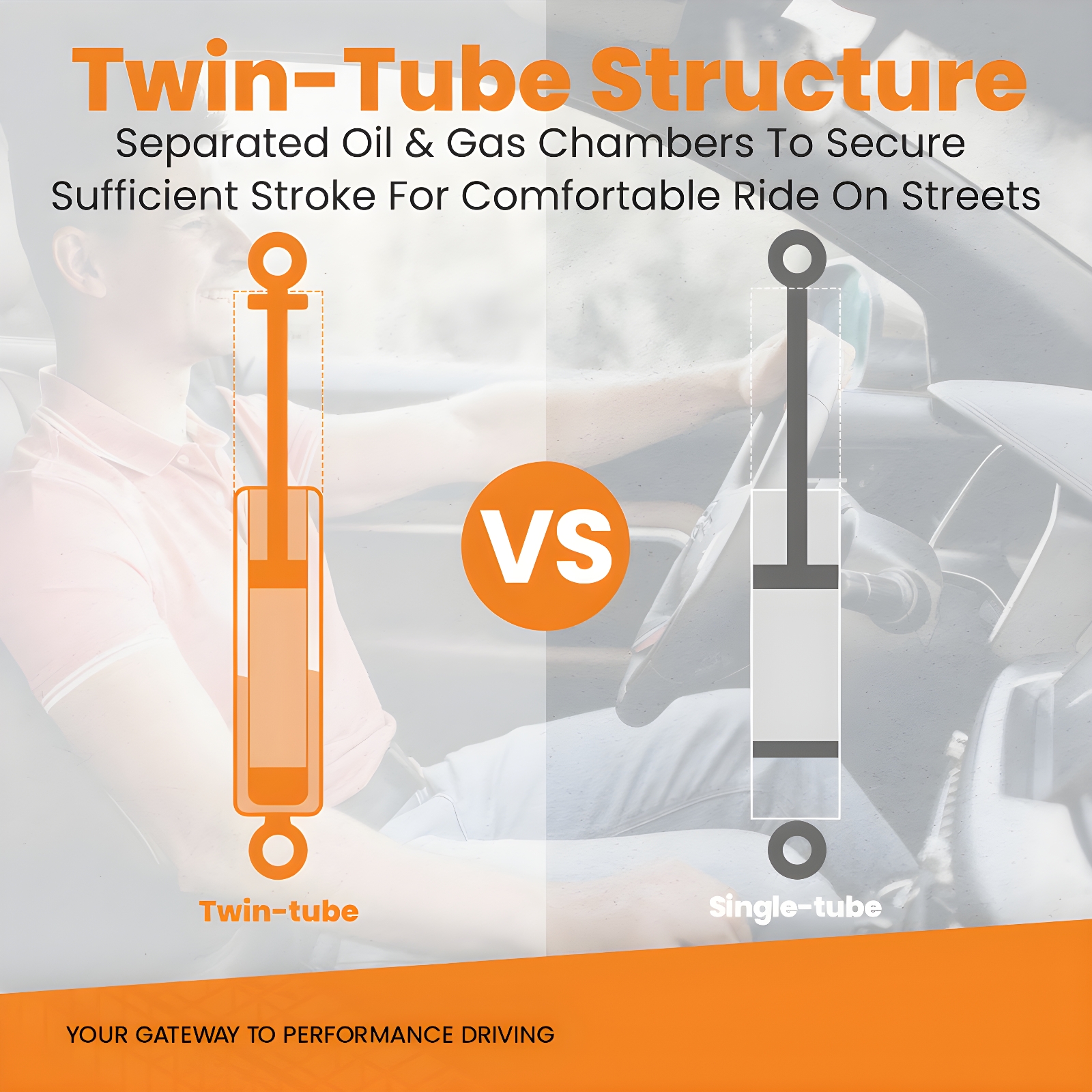 9. Twin-Tube structure ---provides excellent handling & control characteristics for most driving conditions