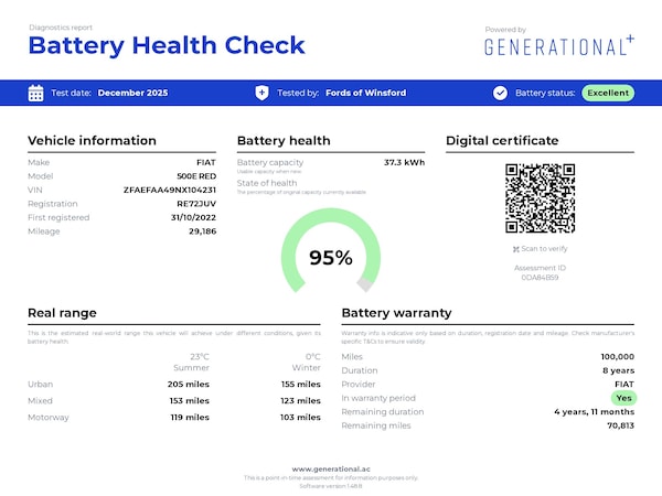 This 2022 Fiat 500e RED is a superb example, having had only one owner since new. This stylish electric city car boasts a 42 kWh battery, offering a maximum range of 199 miles when fully charged. For convenience, it comes with a Mode 2 charging cable and features automatic air conditioning with climate control, as well as a dusk sensor that automatically turns on the headlights. Its MOT is valid until September 2026, providing peace of mind for the new owner. The Fiat 500e RED stands out with its efficient electric powertrain, making it an excellent choice for urban driving and beyond. Home charging is straightforward, taking approximately 6 hours with a 7kW charger, while rapid public charging can replenish the battery from empty to 80% in just 35 minutes. These charging capabilities, combined with its impressive range and single owner provenance, position this vehicle as a compelling and practical option compared to other electric cars on the market. Welcome to the award winning FOW Car Supermarket. Were the largest and most trusted Car Supermarket in the North West with two convenient locations in Winsford, Cheshire and Trafford, Manchester. With over 60 years of experience, were proud to offer award winning customer service and great prices alongside one of the UKs best instore and online car shopping experiences. Your new car from FOW will be prepared to the highest standard with each vehicle undergoing a series of mechanical, visual, and quality control inspections...