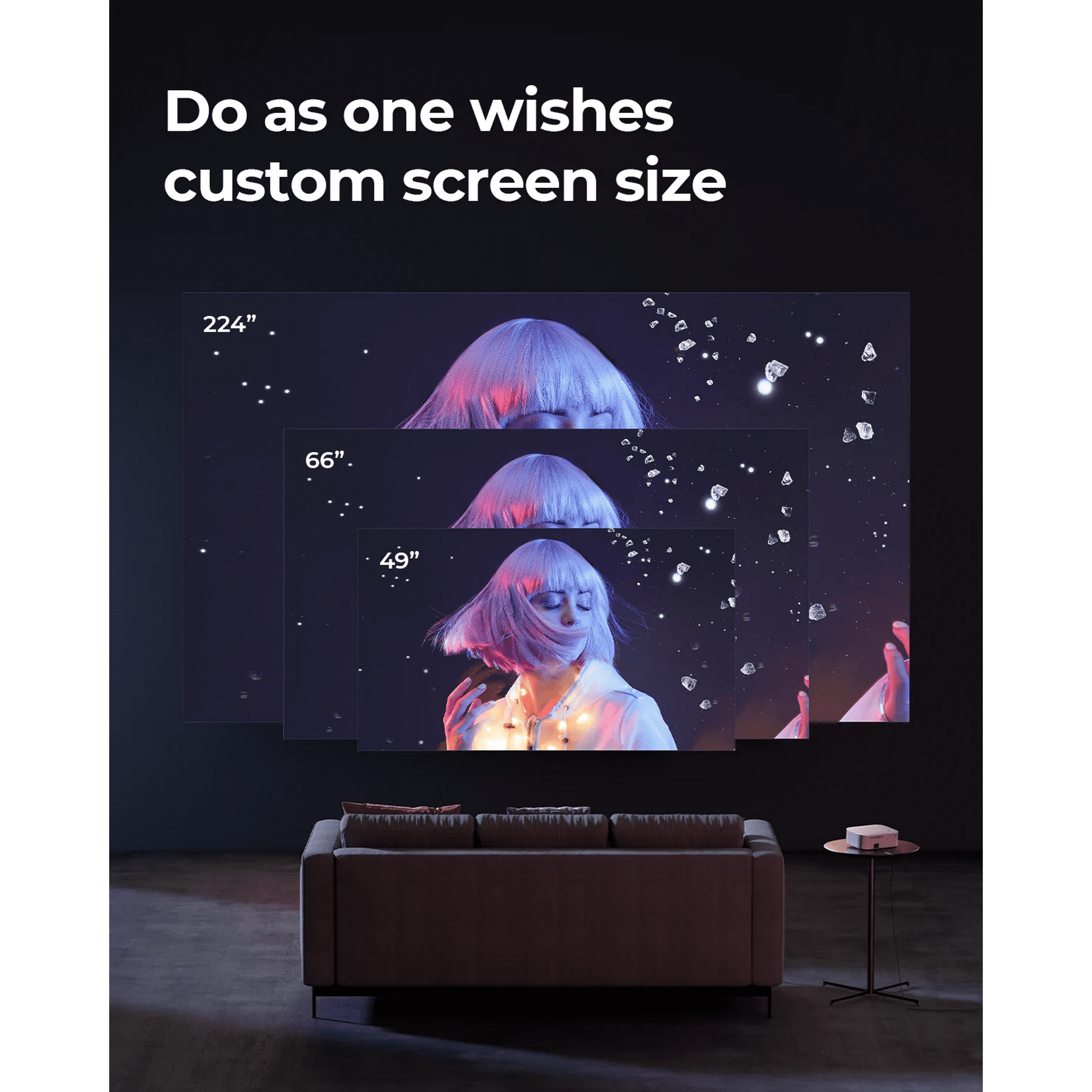 The VANKYO home theater projector's Dolby stereo sound enables you to enjoy cinematic experiences with crystal clear sound. By lightly tapping the remote control, the screen size can be changed using the 75% zoom function.