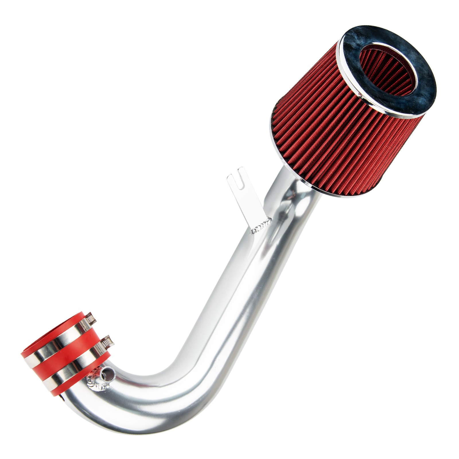 - Attach the included silicon hose and connector to the air intake tube.