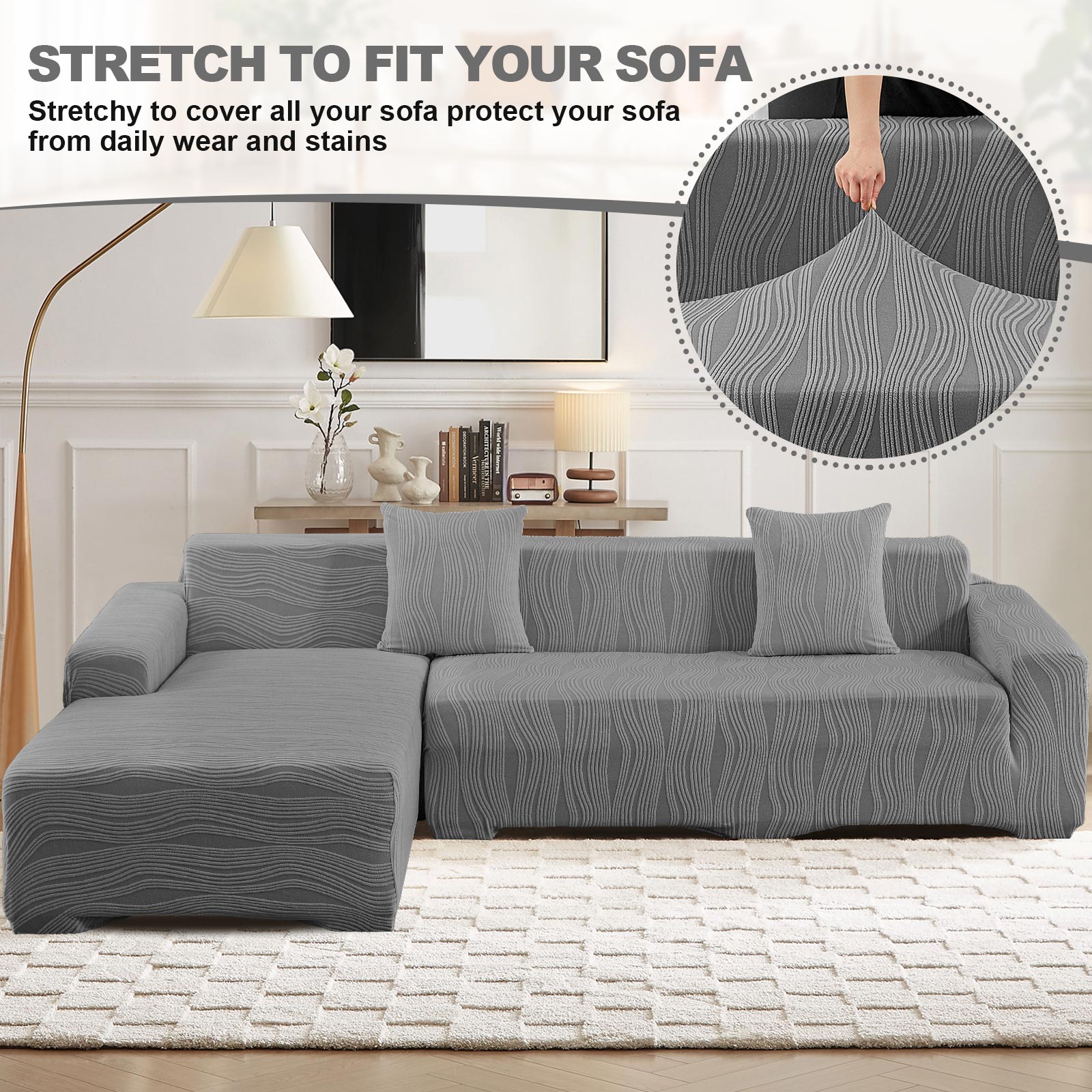 【Spezielles Design】Hochwertiger vielseitiger grau Sofabezug, Sie können Ihr Sofa nach Belieben mit Kissen in anderen Farben dekorieren. Zusätzlich ist der Sofabezug mit einem dicken Gummiband konstruiert, um die unteren Kanten abzudecken. Wird mit Schaumstoffstäbchen geliefert, und die Schaumstoffstäbchen können verhindern, dass der Sofabezug verrutscht, wodurch eine rutschfeste und attraktive Wohnkultur entsteht.