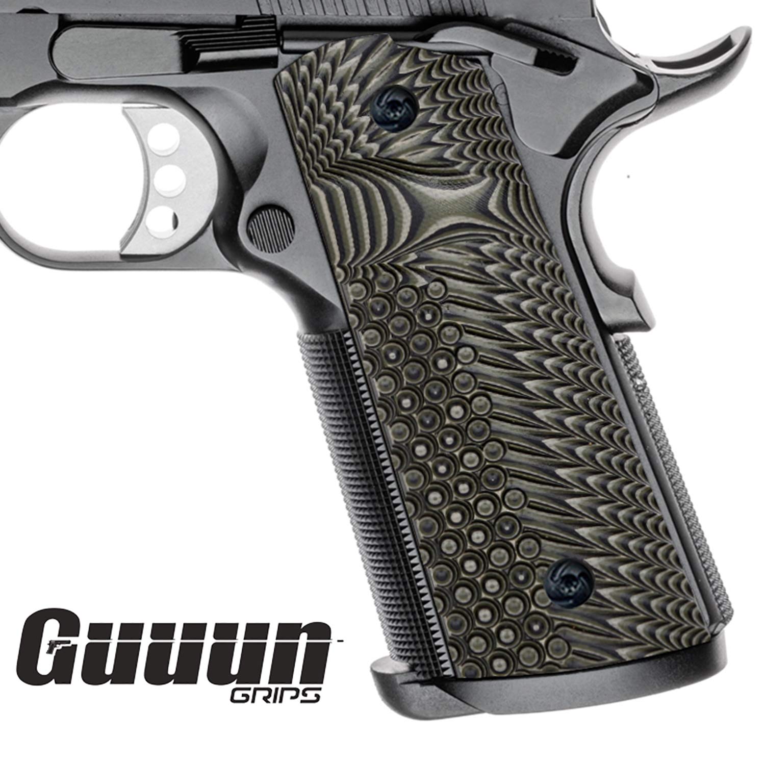 Guuun G10 Grips for Full Size 1911 Magwell Grip Ambi Safety Cut Green/Black