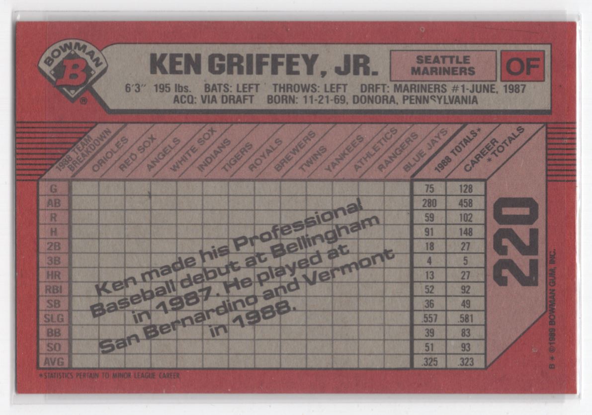 #220 1989 Bowman Ken Griffey Jr. RC Seattle Mariners