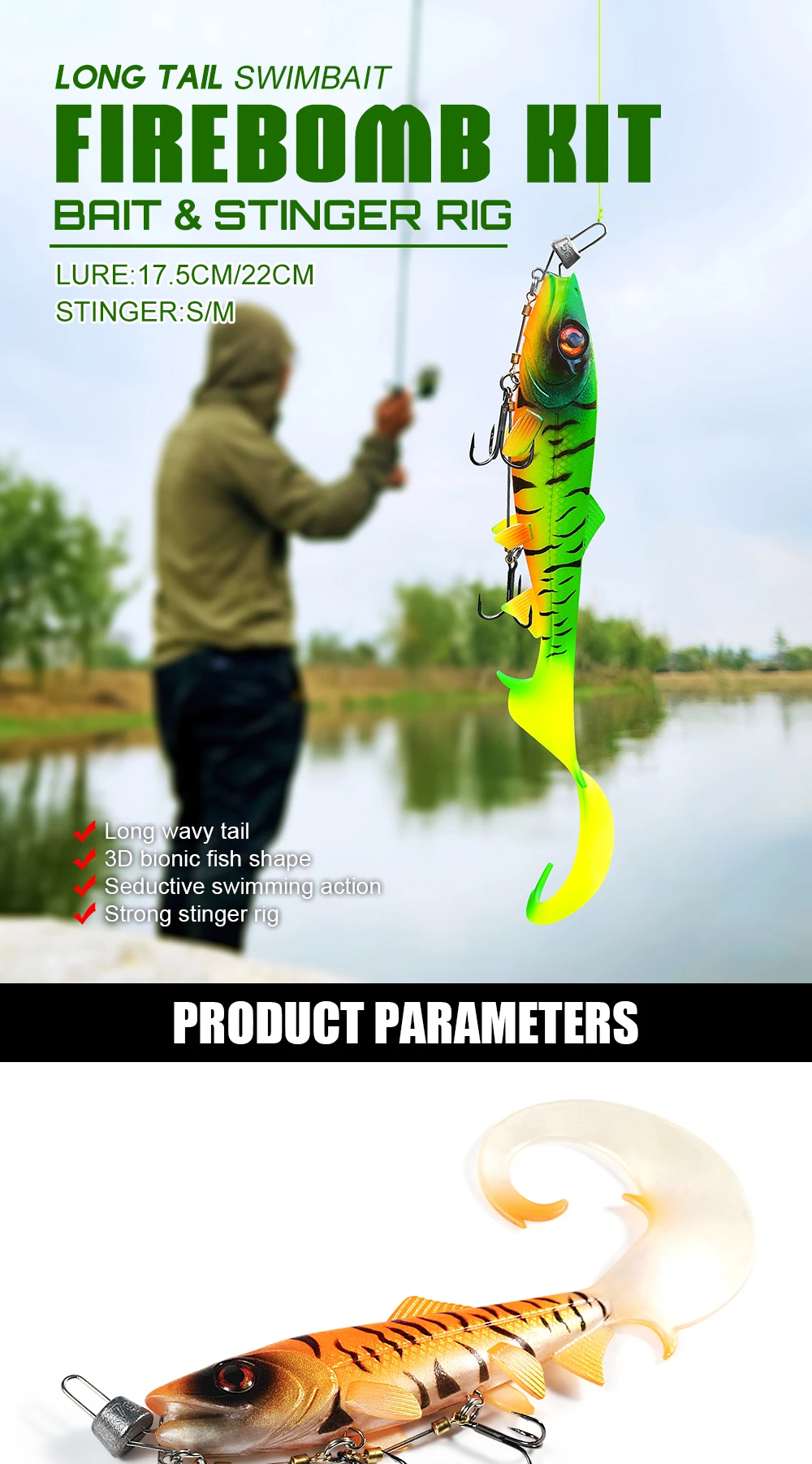Spinpoler Firebomb Swimbait With Stinger Rig Hook Fishing Kit Long Tail Grub Soft Lure Sinker Weight For Pike Big Game Fake FishFirebomb With the Pike Systerm Rig kit