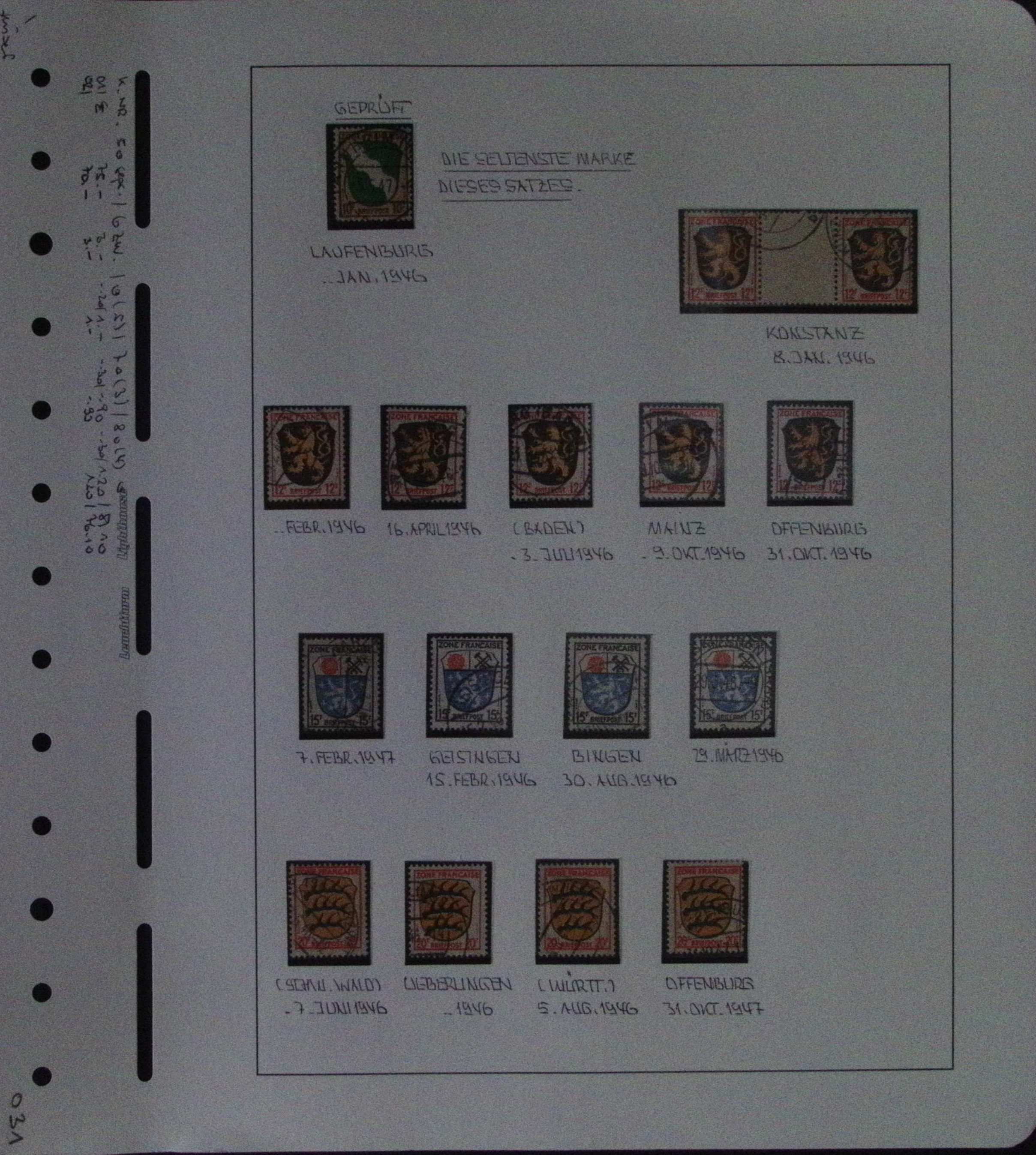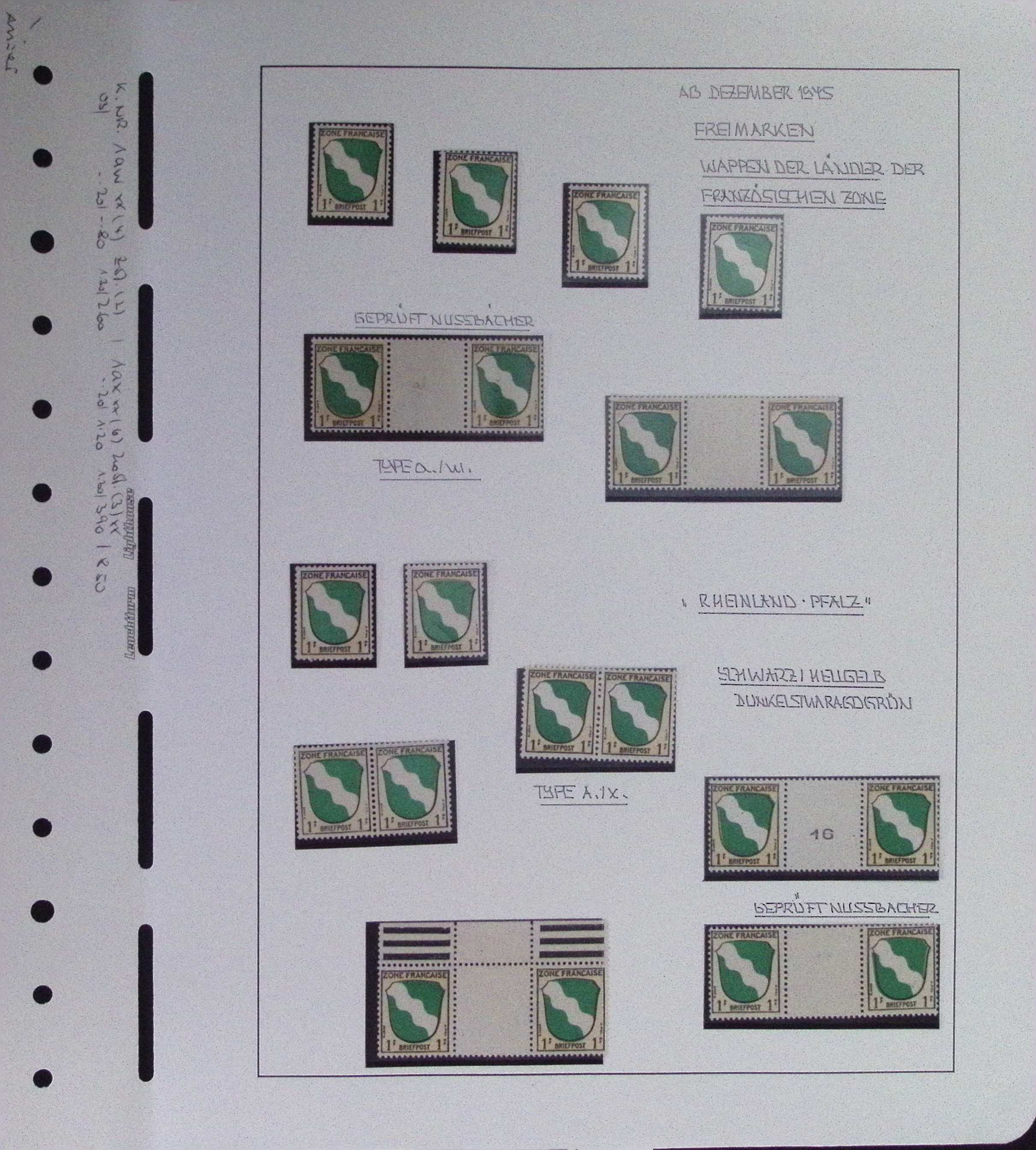 Schöne Sammlung auf selbstgestalteten Blättern. Alles genau beschriftet. Anscheinend kenntnisreich beschrieben. Allerdings ist nicht alles geprüft, was als geprüft beschrieben ist. Geprüfte Marken sind rückseitig abgebildet. Trotz dieser Einschränkung interessant Objekt. Die ungestempelten Marken sind meistens **.