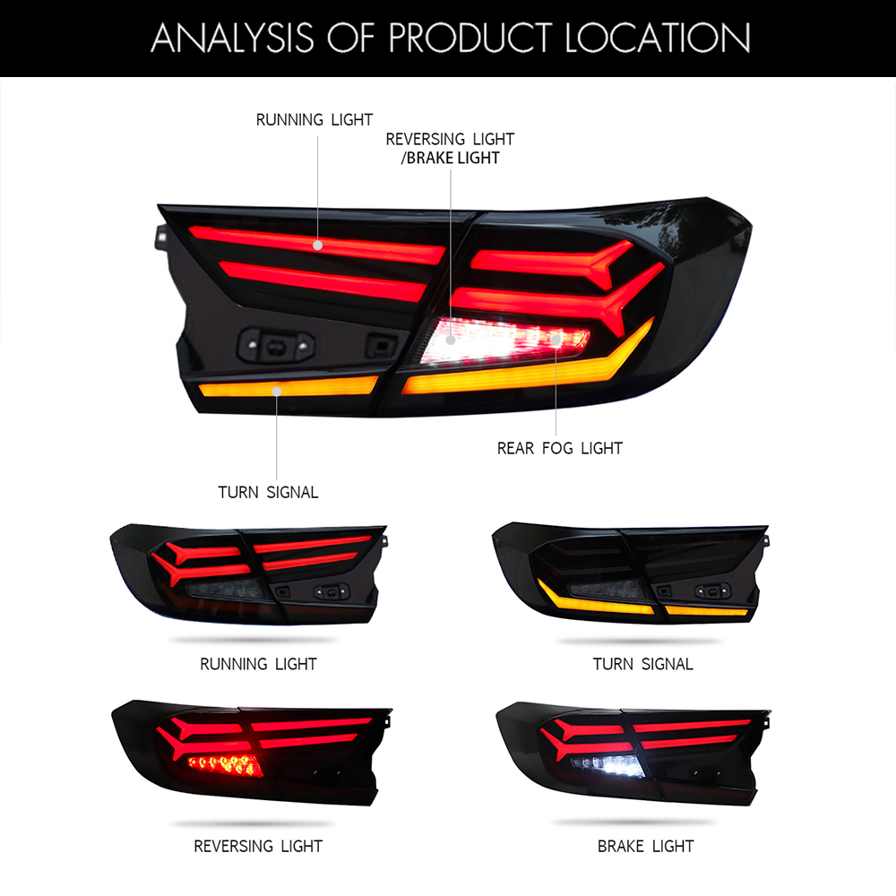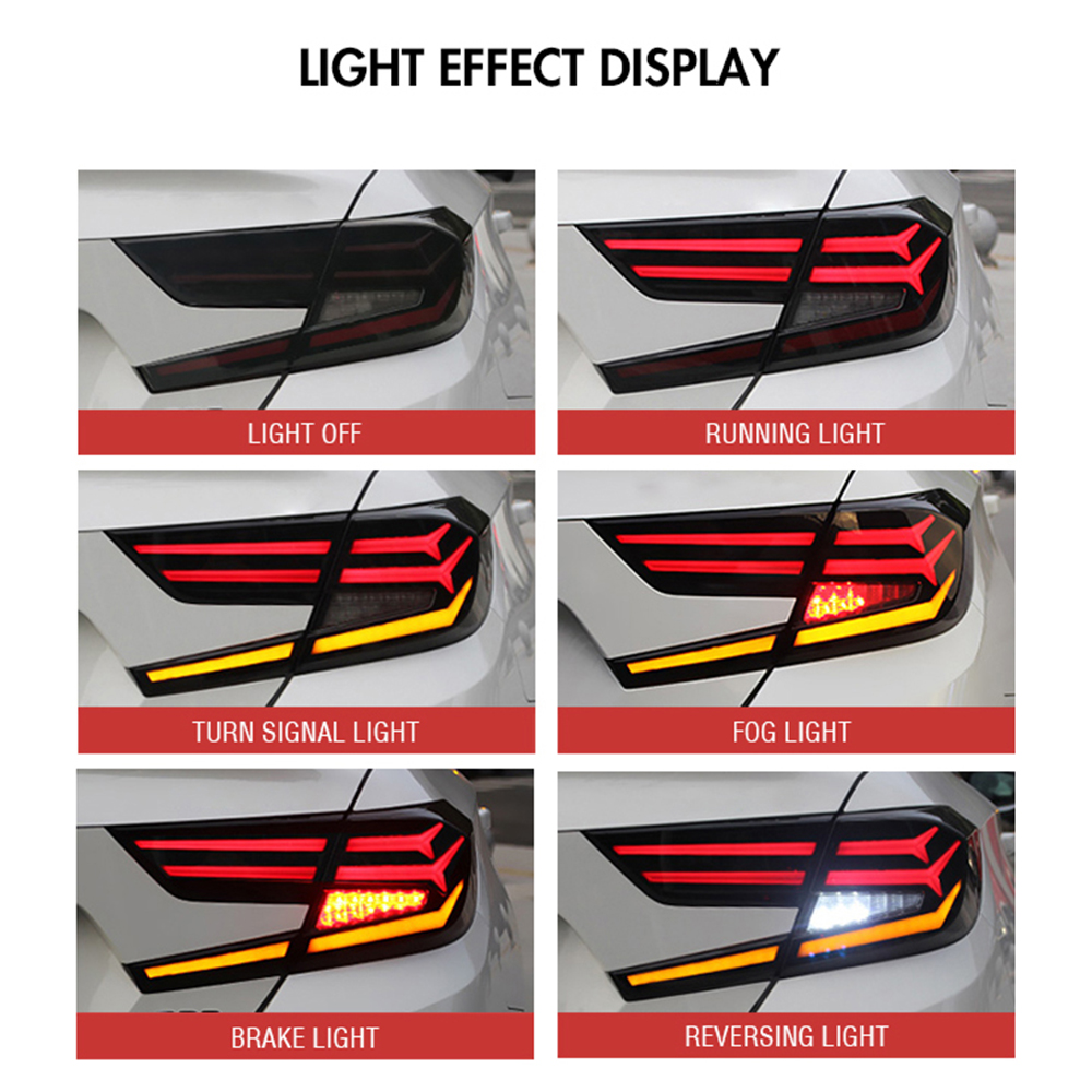 LED Tail Lights for Honda Accord 2018-2022 10th Gen Black Rear Lamps Assembly