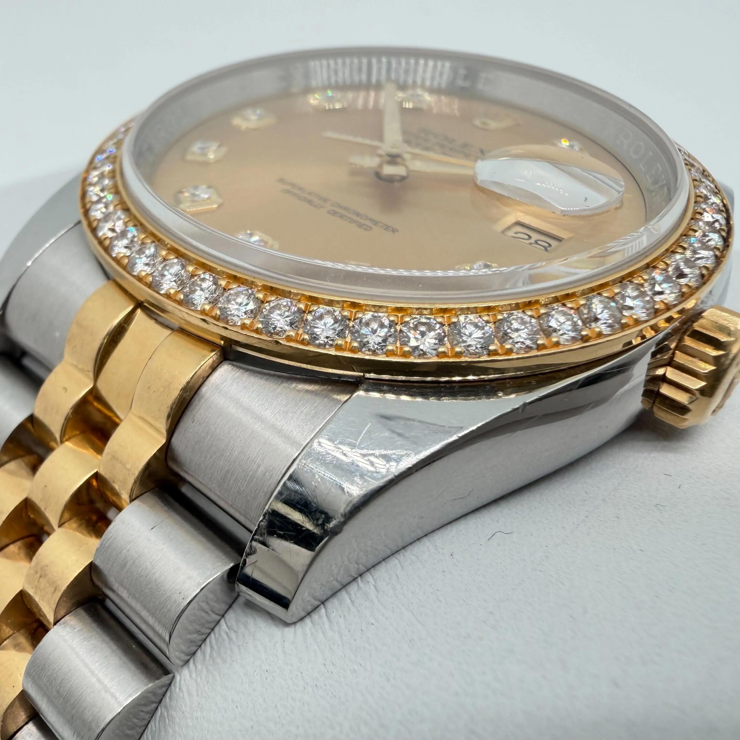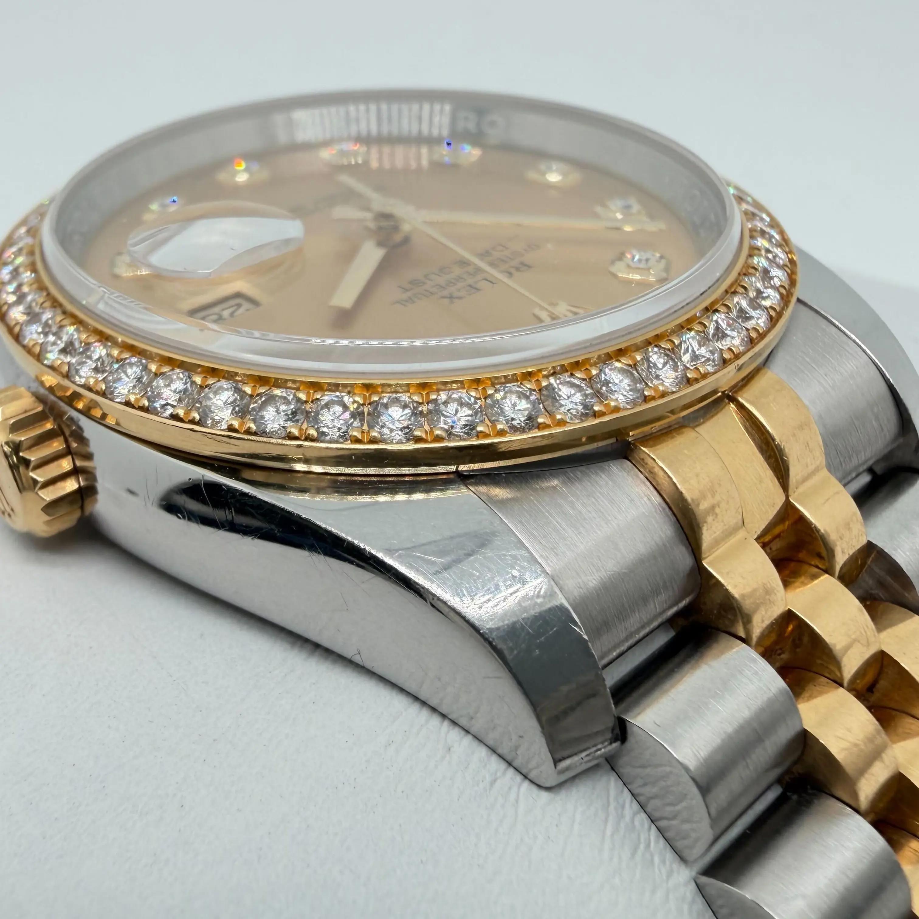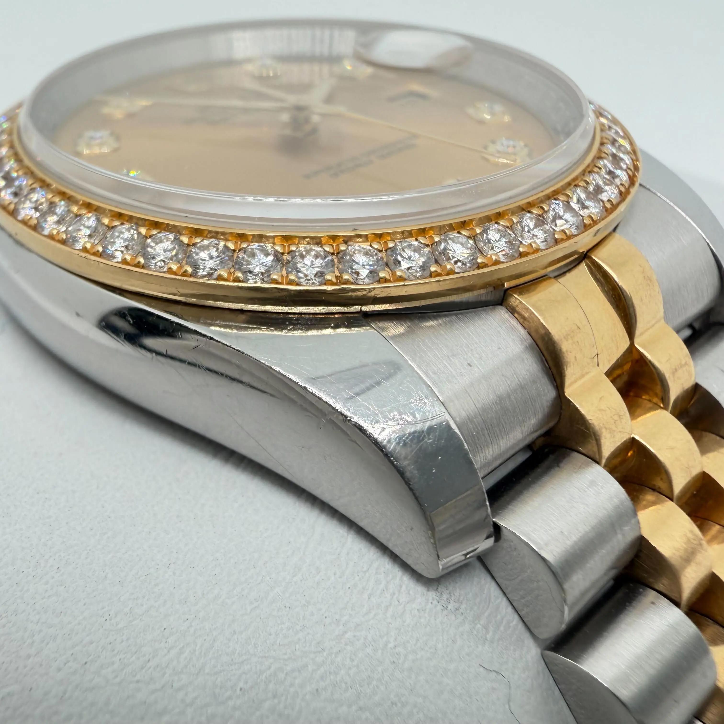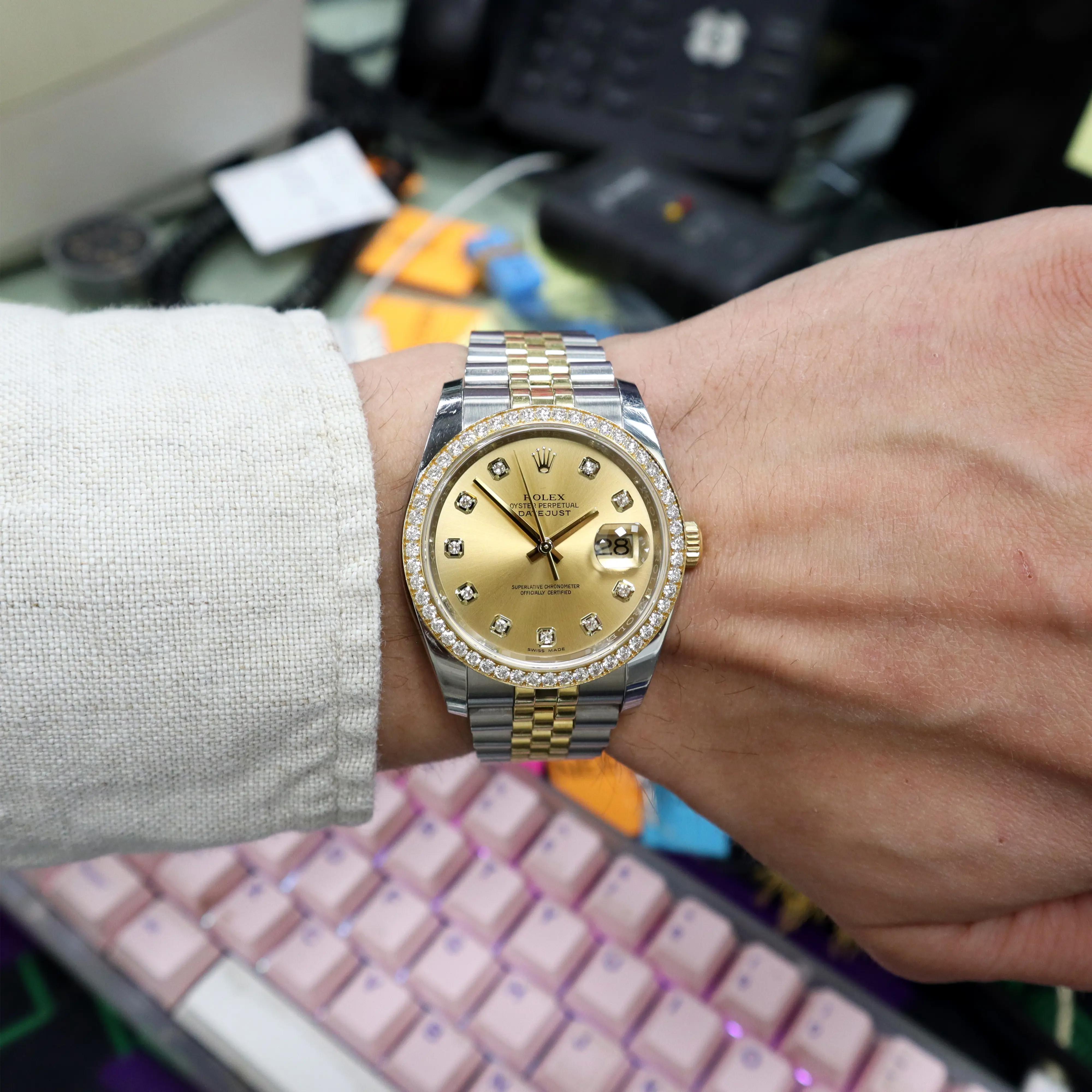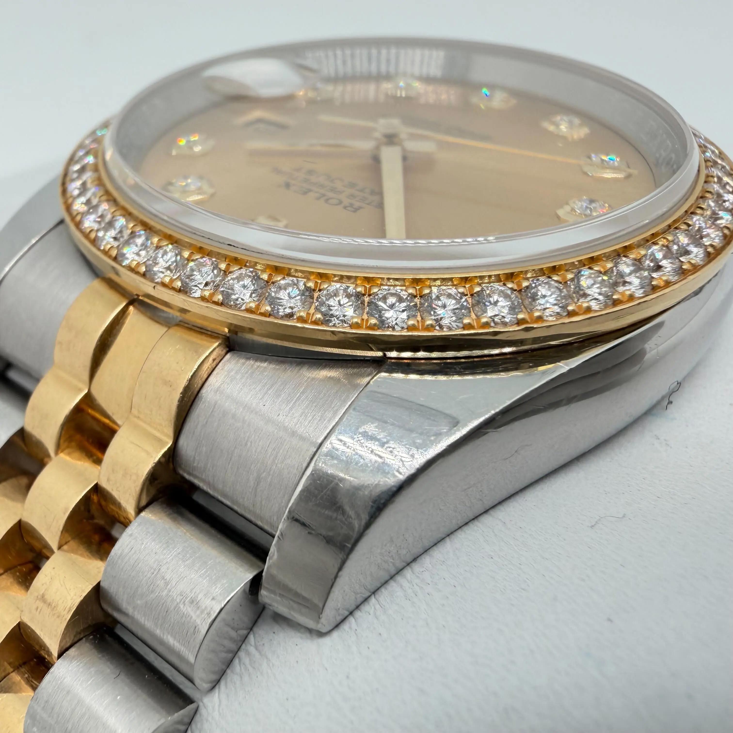 2010s Rolex 116243 Datejust 36 18K Gold Steel Diamond Champagne Dial Watch
