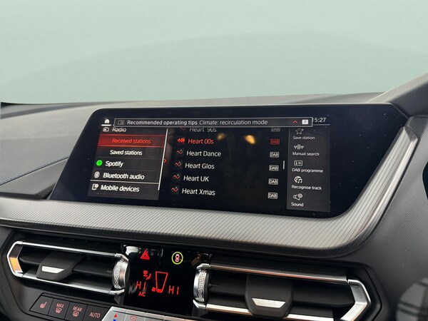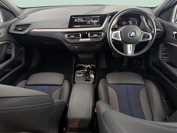 Discover this stylish white BMW 1 Series M Sport, boasting eye-catching 18in M Double-Spoke alloys and a premium interior with Trigon Cloth-Sensatec seats finished in black and blue stitching. Enjoy the comfort of heated seats and the advanced BMW Live Cockpit Professional with Sat Nav and Connected Package. LED headlights, Performance Control, and Driving Modes make every drive exciting, while Lane Departure Warning, Parking Sensors, and Cruise Control keep journeys safe and effortless. 1 service recorded, last serviced on 16/04/2025 at 17,719 miles. MOT to 20/06/2026. Visit our website for service history, online valuation, full vehicle specification plus multiple images. Certain features listed may be available via subscription packages at extra costs, please consult with BMW for details. Any feature/option specified here is from 3rd party data. We cannot guarantee the accuracy of any specification supplied by a 3rd party. We recommend that you physically check the specification of the vehicle on site prior to purchase. This information does not form part of the buying contract. Terms & Conditions apply. We have over 2,000 cars available from our 10 national branches, check our website to see all our stock. Our Trustpilot rating is 4.4/5 with over 9,000 reviews.