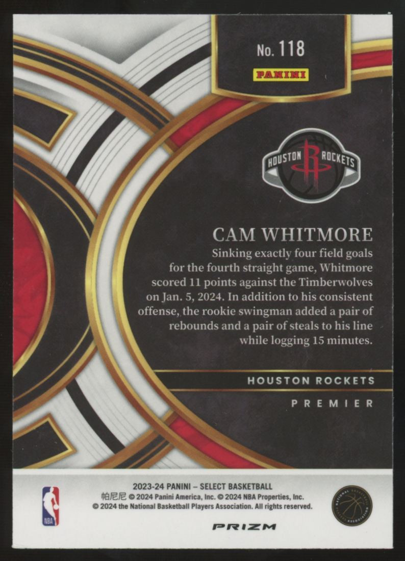 2023-24 Panini Select Cam Whitmore RC Premier Tiger Prizm SSP #118
