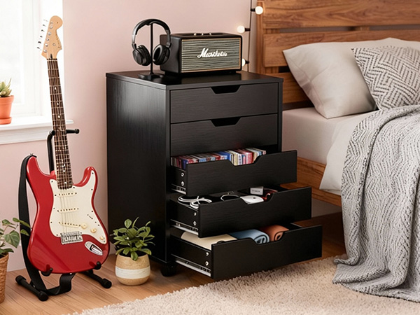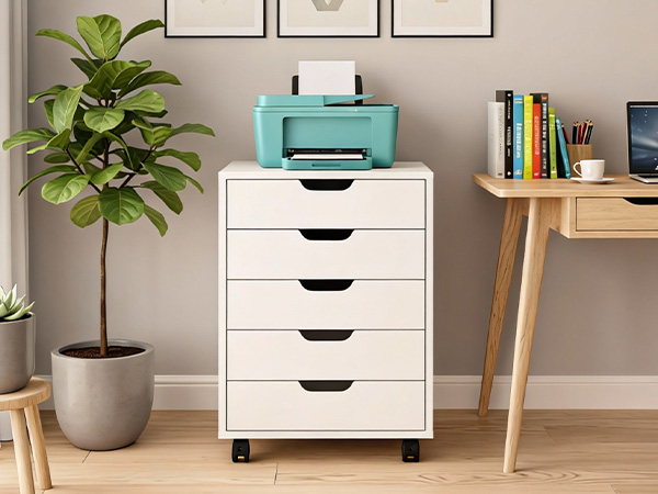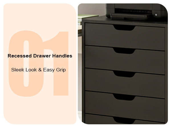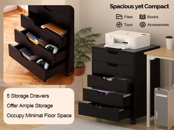 → Spacious 5 Drawers Storage:Measuring 48*40*65cm, this filing cabinet features 5 small drawers to offer classified storage space for office essentials—perfect for organizing documents, stationery, paper clips, and other small office supplies. The black under-mount slides ensure smooth drawer opening and closing, allowing you to access your items effortlessly without hassle.