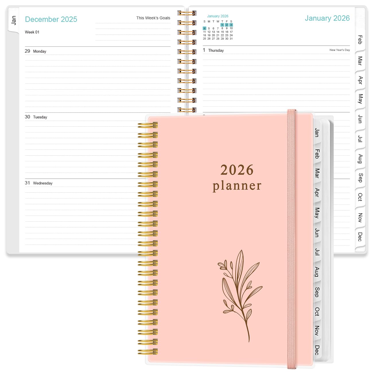 2026 Planner - Planner 2026 from January 2026 to December 2026, Weekly & Monthly Planners Spiral Bound with 12 Monthly Tabs, Inner Pocket, 6.4" x 8.5", Pink New