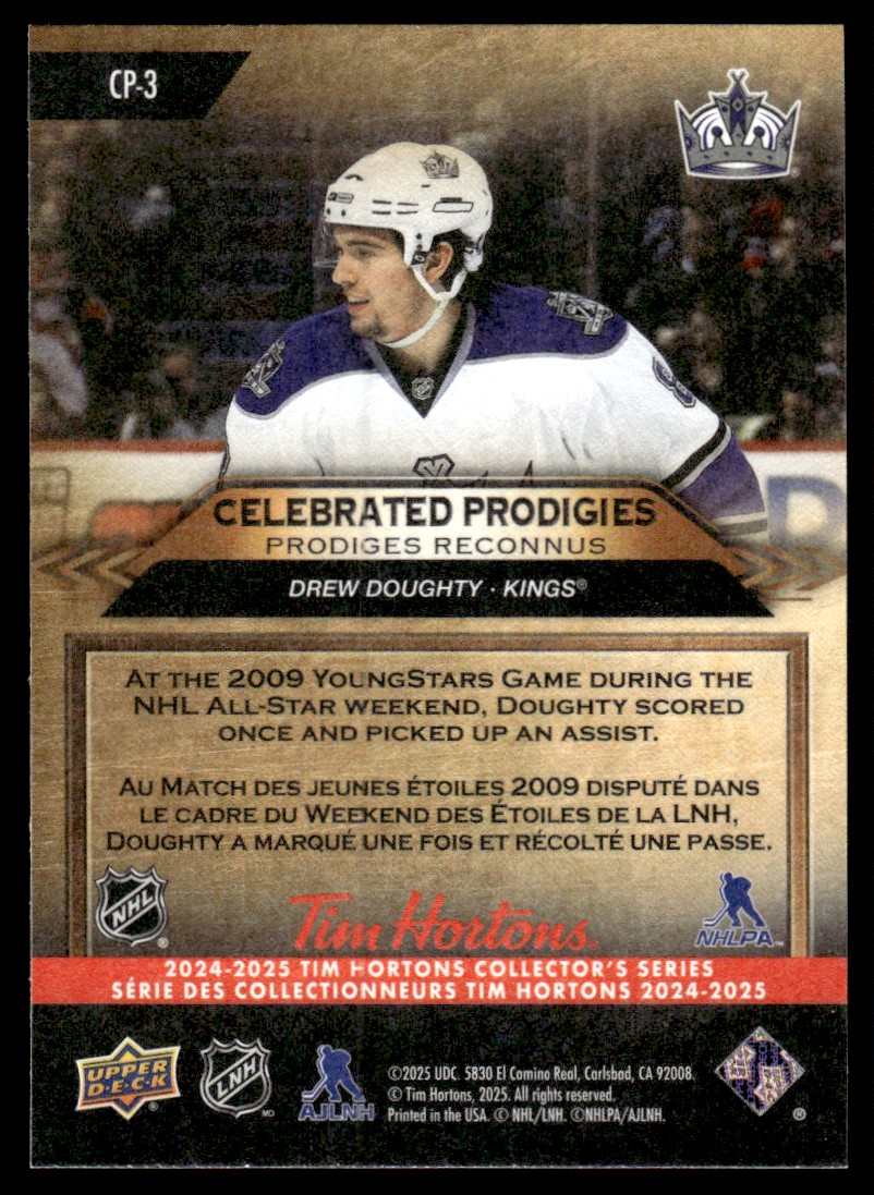| Description: | Auston Matthews | | Category: | Hockey | | Year: | 2025 | | Product: | Upper Deck Tim Hortons Celebrated Prodigies | | Team: | Toronto Maple Leafs | | Card Number: | CP-3 | | Dimensions: | 3½" x 2½" | | SKU: | HK Bin0144 R01 A (14) |