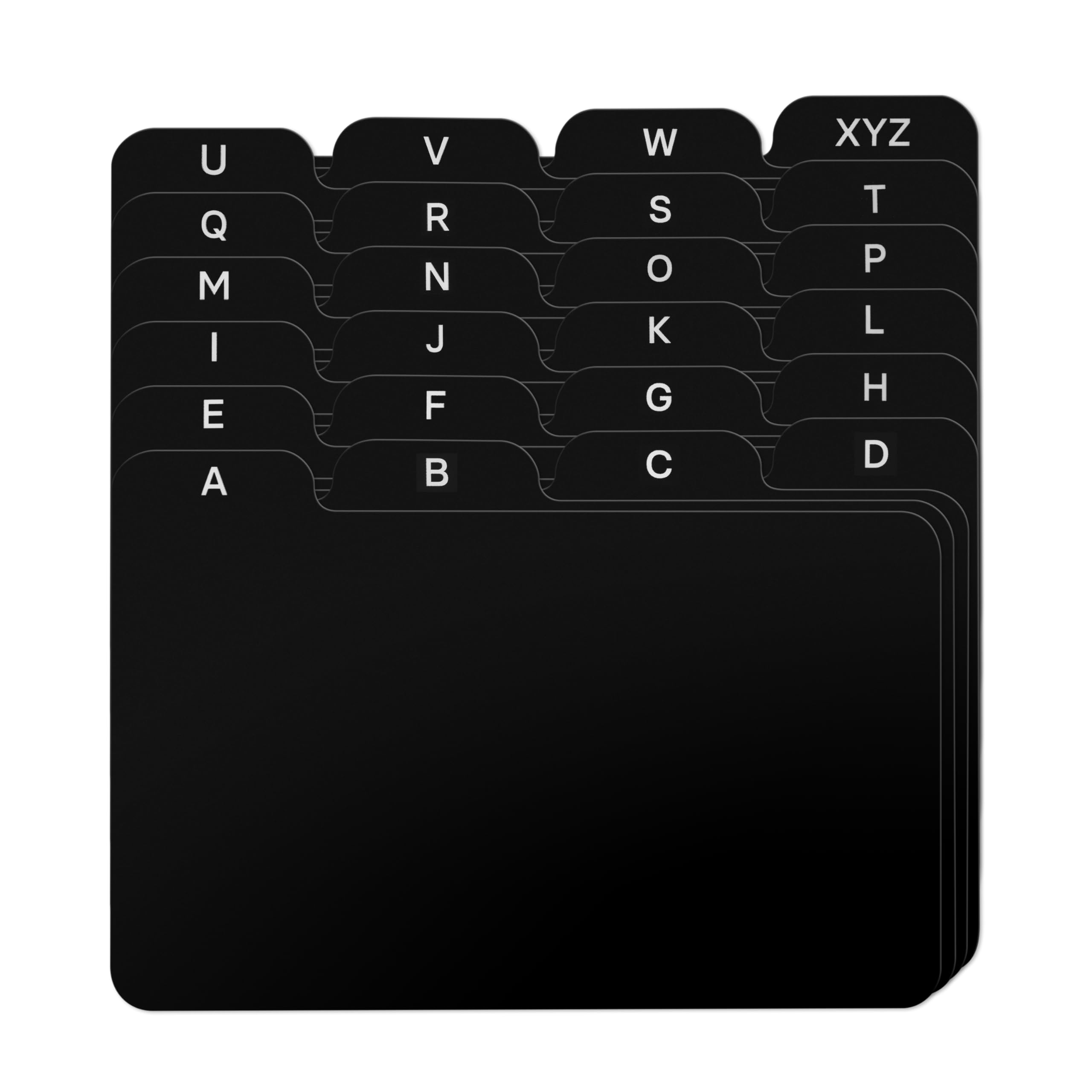 - CRISP BLACK DESIGN | Elegant black alphabet dividers crafted from thick paper card stock.