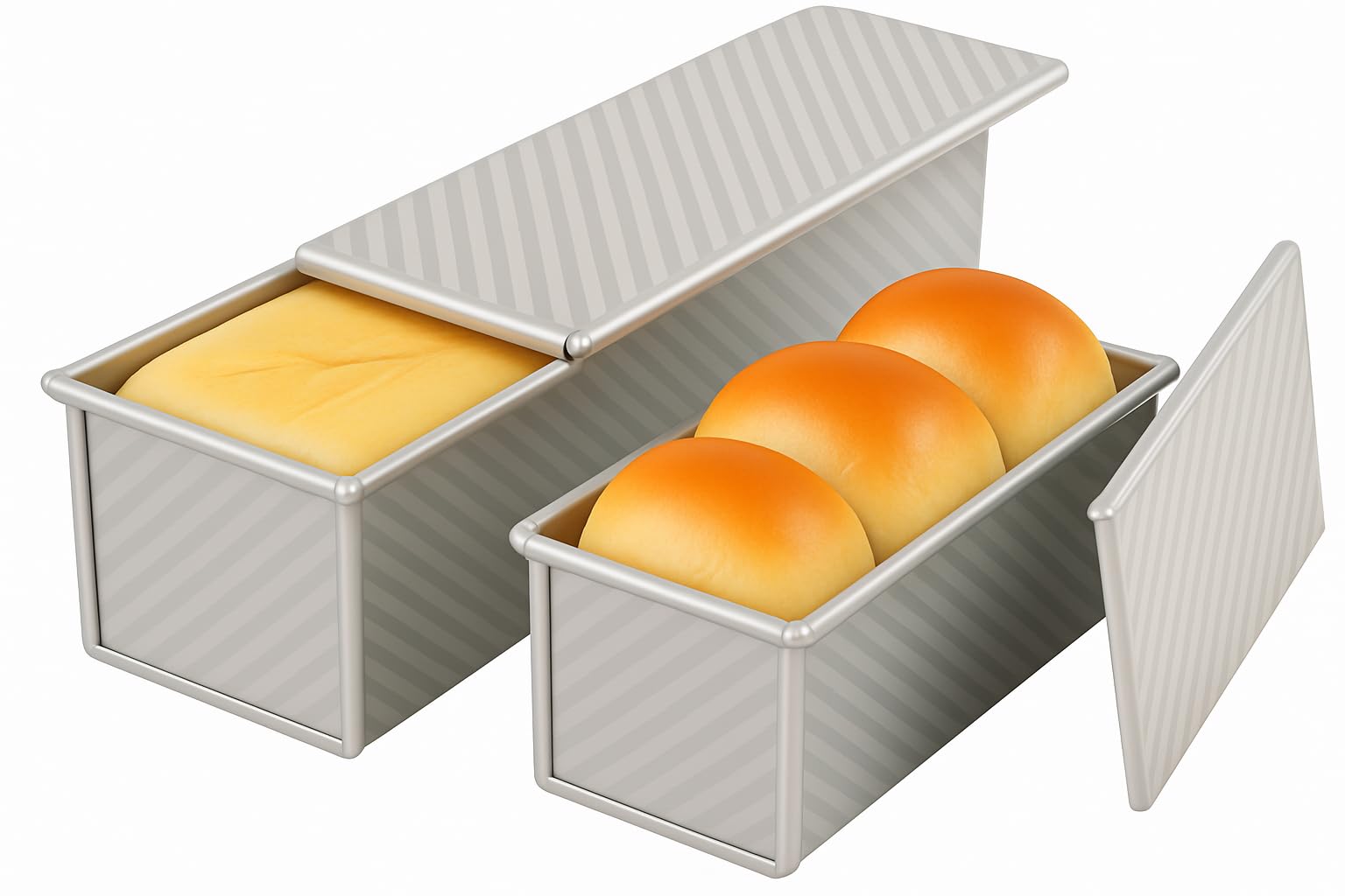 Logario 2-Pack Pullman Loaf Pan with Lid –Includes Two 13inch+8.3inch, Silver