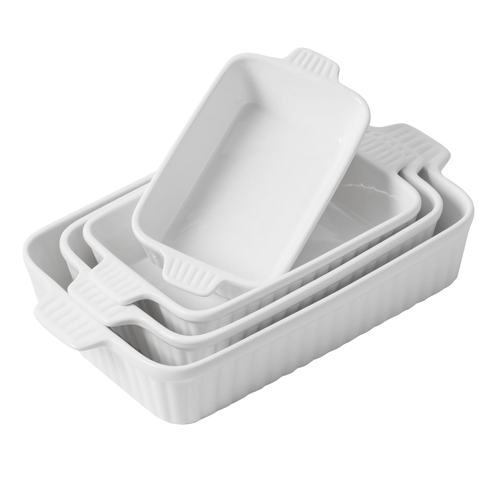 - From Weeknight Dinners to Grand Holiday Celebration: Whether you're prepping meals for the week, baking a birthday cake, or hosting a Thanksgiving dinner, this durability and elegant white bakeware set performs beautifully. The ceramic baking dishes goes seamlessly from oven to table for a stylish presentation