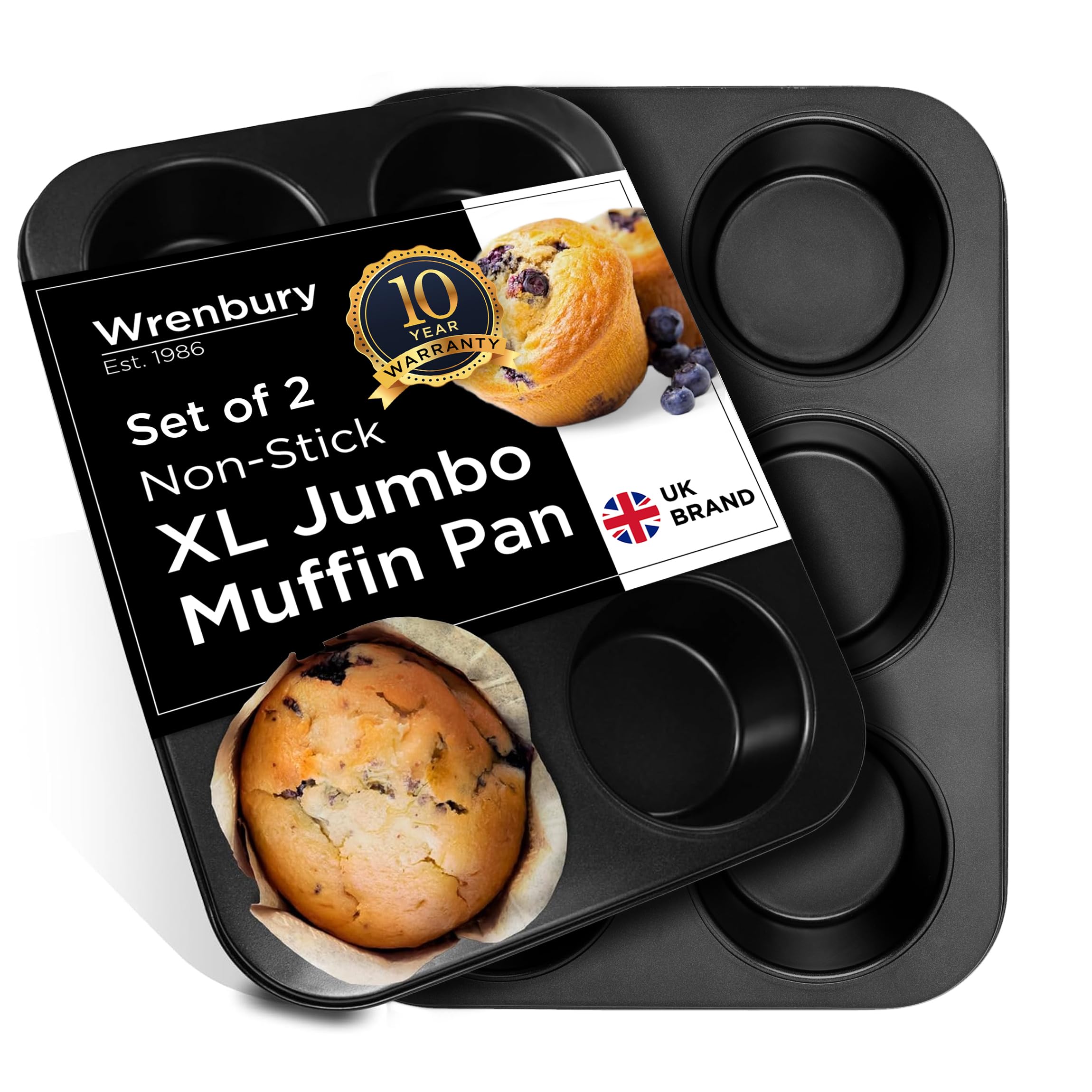 Wrenbury Jumbo Muffin Pan 6 Cup Set - 6 Cup, of 2, Black