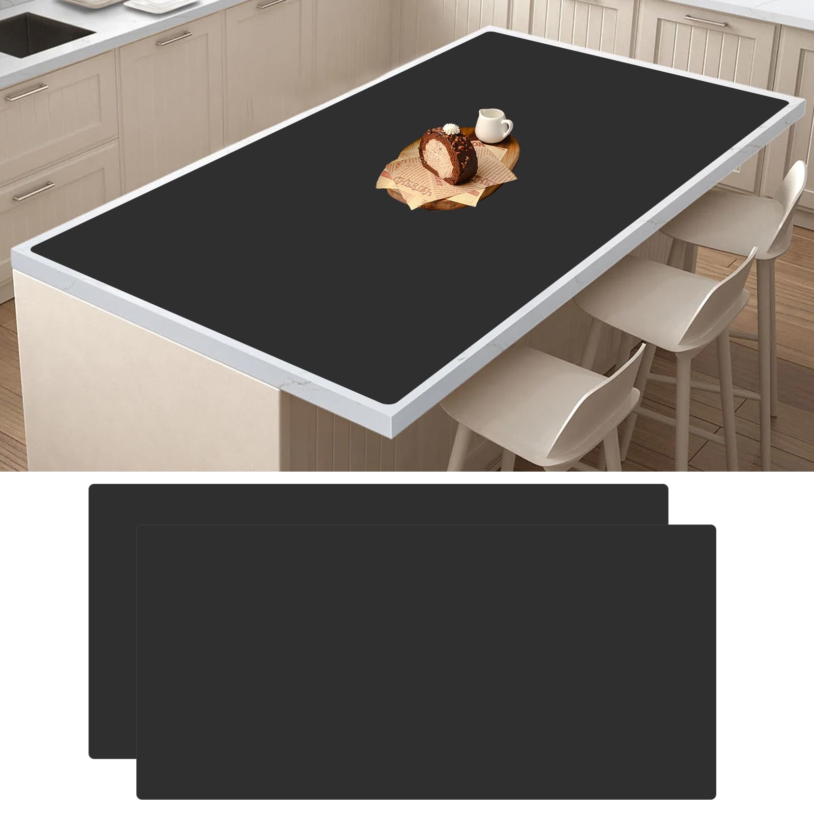 【Cuttable & Wide Application】: The extra large silicone kitchen counter mats can be cut to fit different sizes and shapes to suit your needs. Ideal as dinner table placemat, black coffee mat,food preparation mats, silicone placemats, kitchen counter mats, dryer top protector mat, nonstick pastry mats, baking mats, clay mats, art mats, drawing mats, game mats, silicone craft mats, and more.