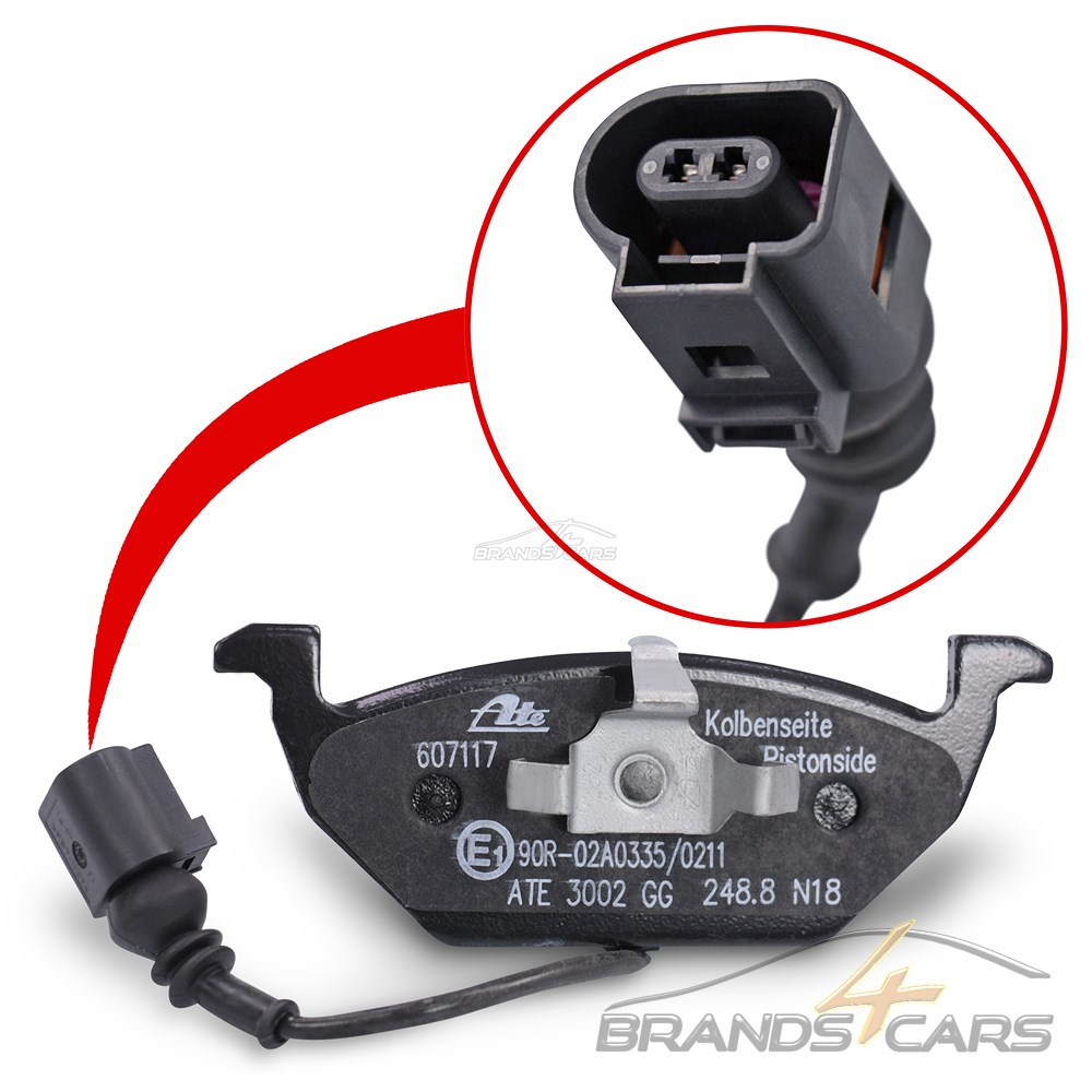 1x Satz (4 Stück) ORIGINAL ATE Bremsbeläge mit Verschleißwarnkontakt (Bremssystem Lucas / TRW) Vorderachse