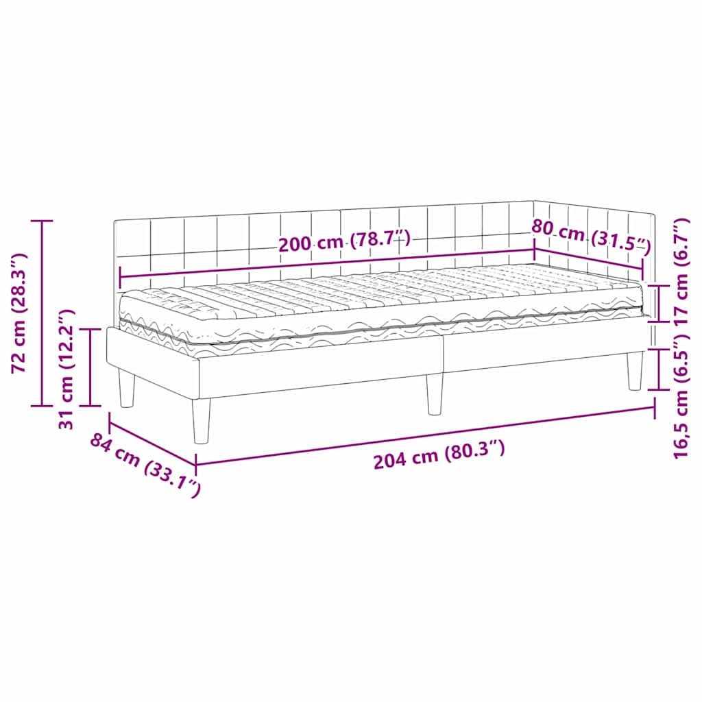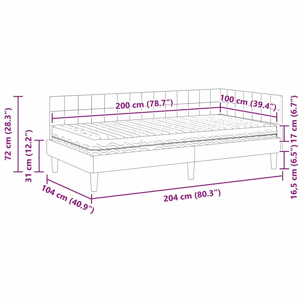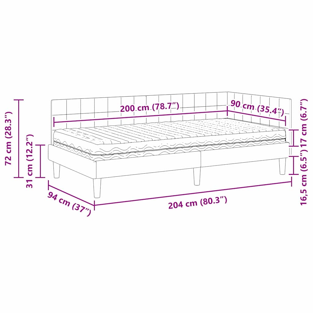 Ce cadre de lit d'angle avec matelas fusionne style et pratique, parfait pour une chambre moderne. Avec sa forme rectangulaire simple, le velours luxueux ajoute une touche d'élégance à votre espace de sommeil.
