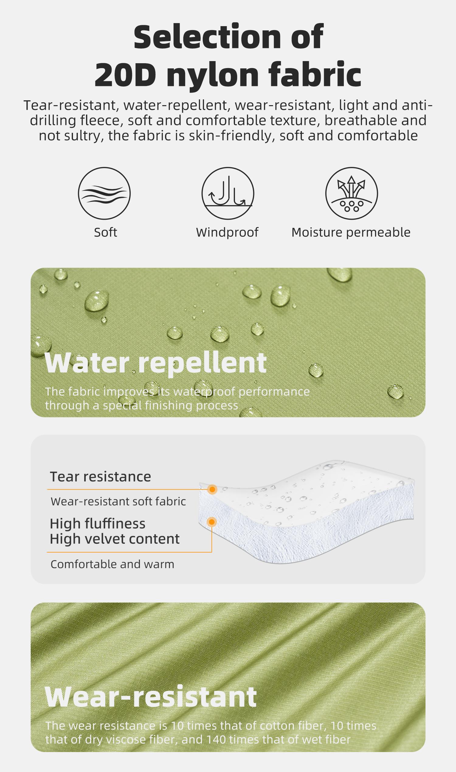 20D Nylon Fabric:Tear resistant water-resistant wear-resistant lightweight and anti drilling velvet texture is soft and comfortable