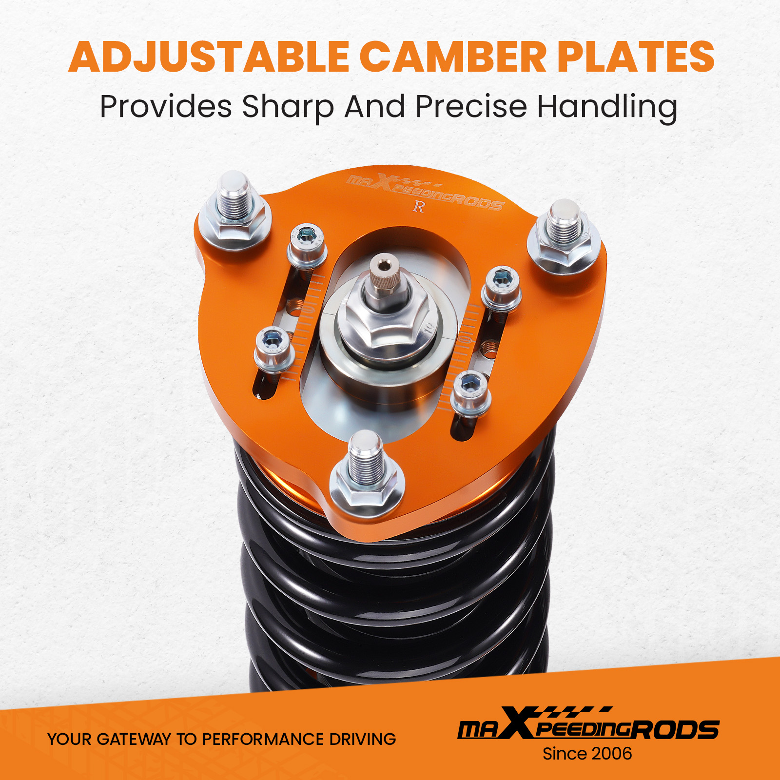 - Adjustable Camber Plate and Pillow ball top mount for sharpening steering response. ( for some models)
