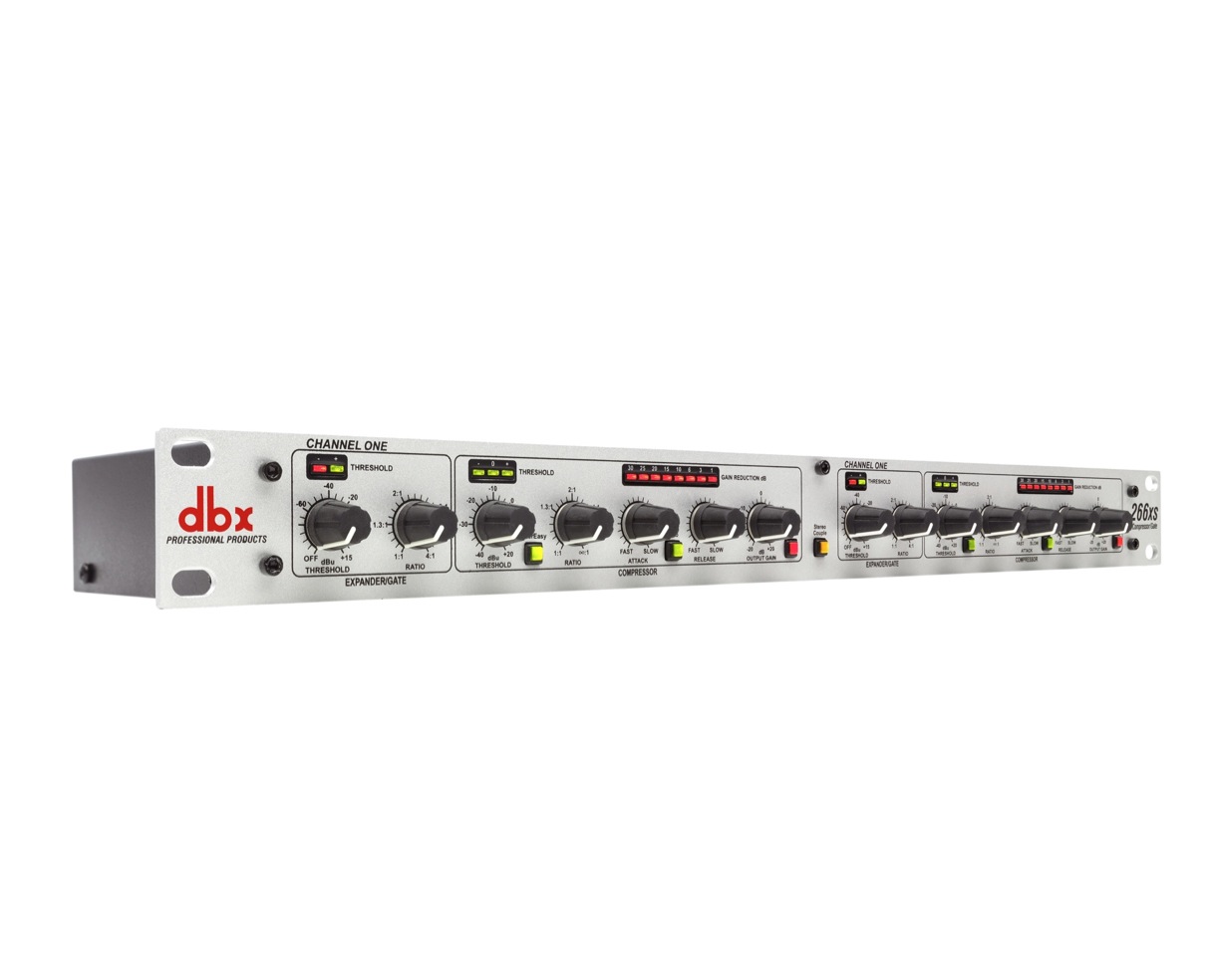 The 266sx from dbx is a dual channel compressor/gate that when added to a live sound rig or studio, will deliver more polished, professional sound. The unit can function either as a stereo processor or in dual mono mode and features all the usual controls required for this kind of processor.