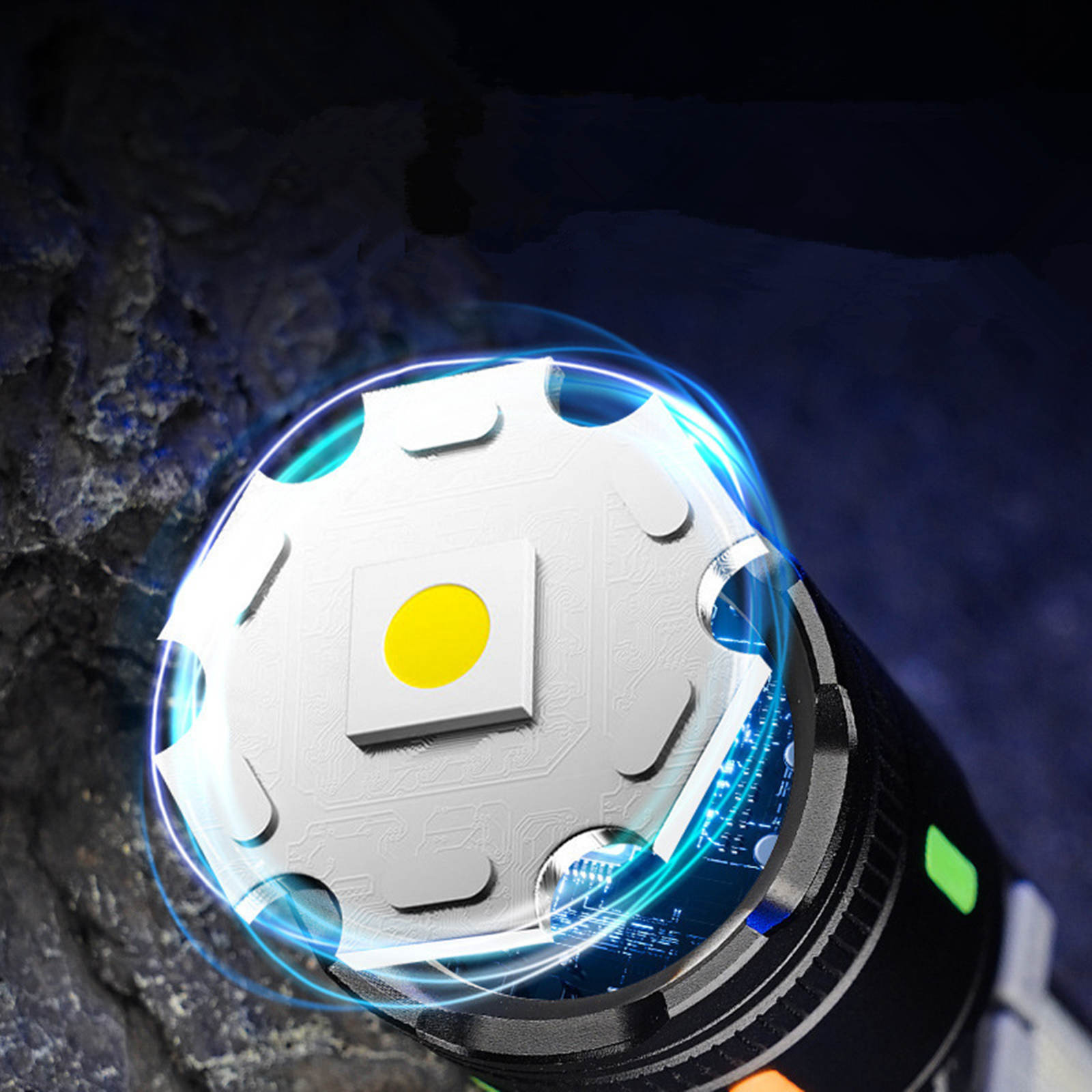 5 Light Modes and Adjustable Head: High lumens flashlights with 5 adjustable modes: High/ Low/ Strobe. Side light has High/Red & Blue warning light 2 functions allow you to use for working camping hiking fishing or warning light in fog and haze weather.the bright flashlight can telescopic adjustable head to adjust the beam distance and size