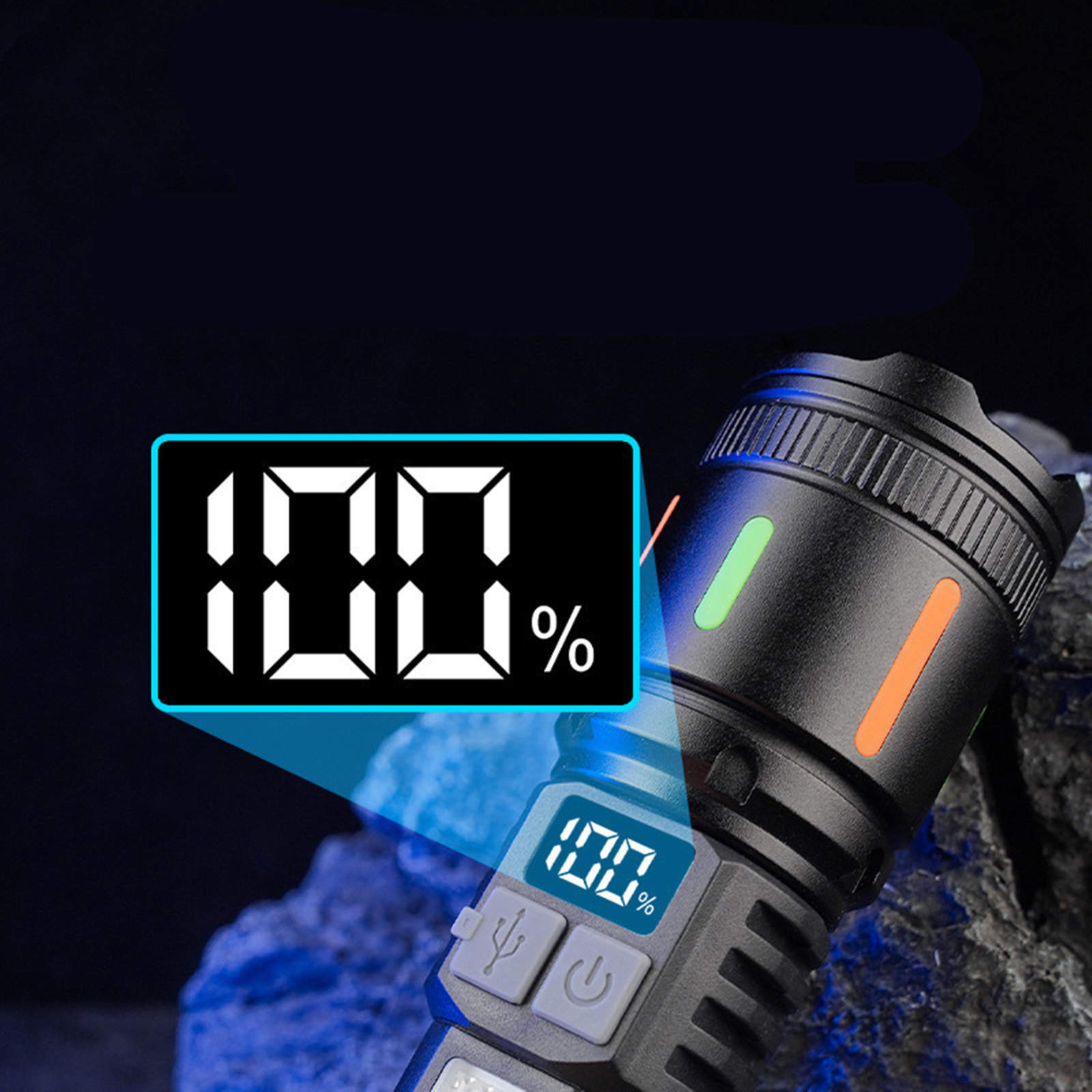 Rechargeable and Fast Charging: The rechargeable flashlight comes with rechargeable battery that can be used for 10 hours(Low mode). and Equipped with intelligent fast charging, compatible with all types of USB charging. The newly upgraded LCD power display is clearly visible, so you can always easily and accurately grasp the remaining power of the brightest flashlight.