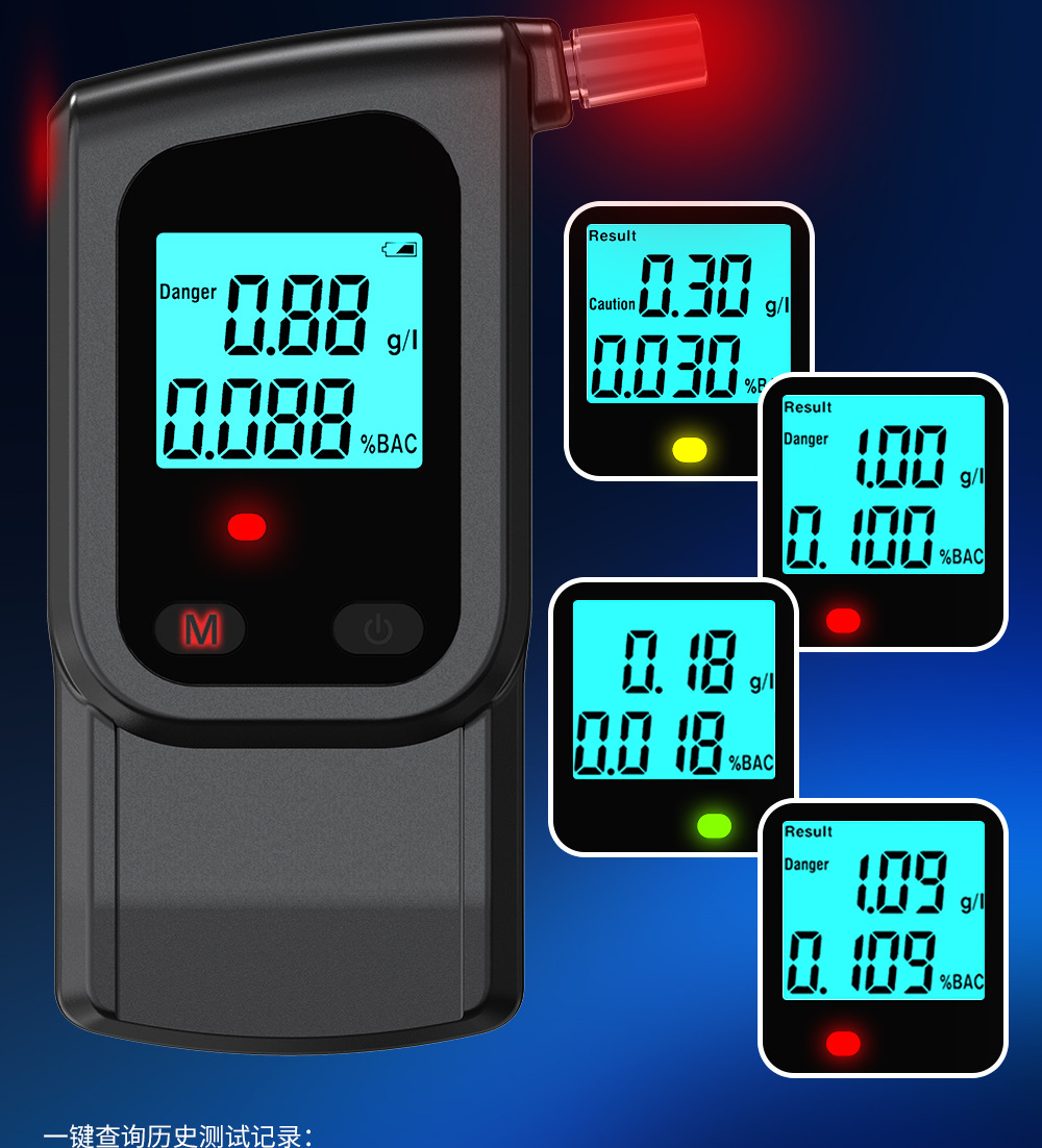 Measurement Range: 10~0.300 %BAC 0~3.00 g/l 0~1.5 mg/l