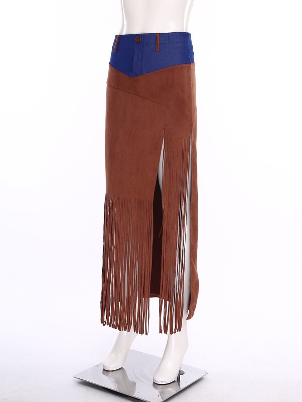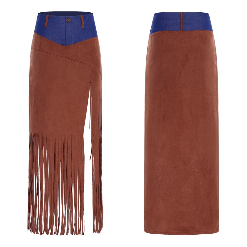 The front fringe and sides-split design enhance the skirt’s movement and add a sense of dynamism, making it ideal for dancing or active wear.