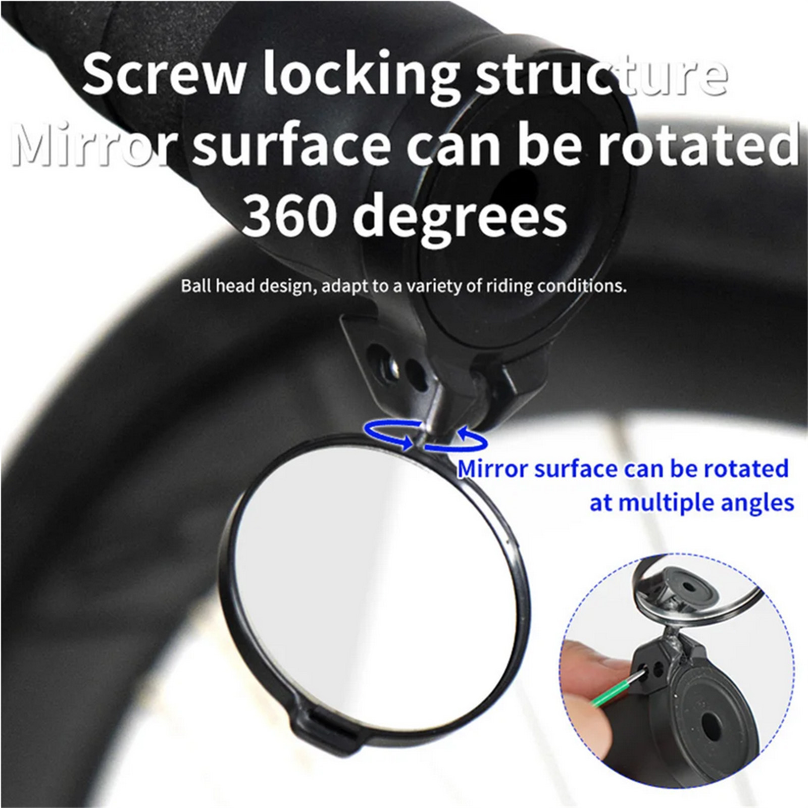 5. 360° Rotation: The bar end bicycle mirrors features a 360-degree rotation function, allowing you to adjust the mirror to the optimal position for your specific driving needs, providing maximum comfort and safety