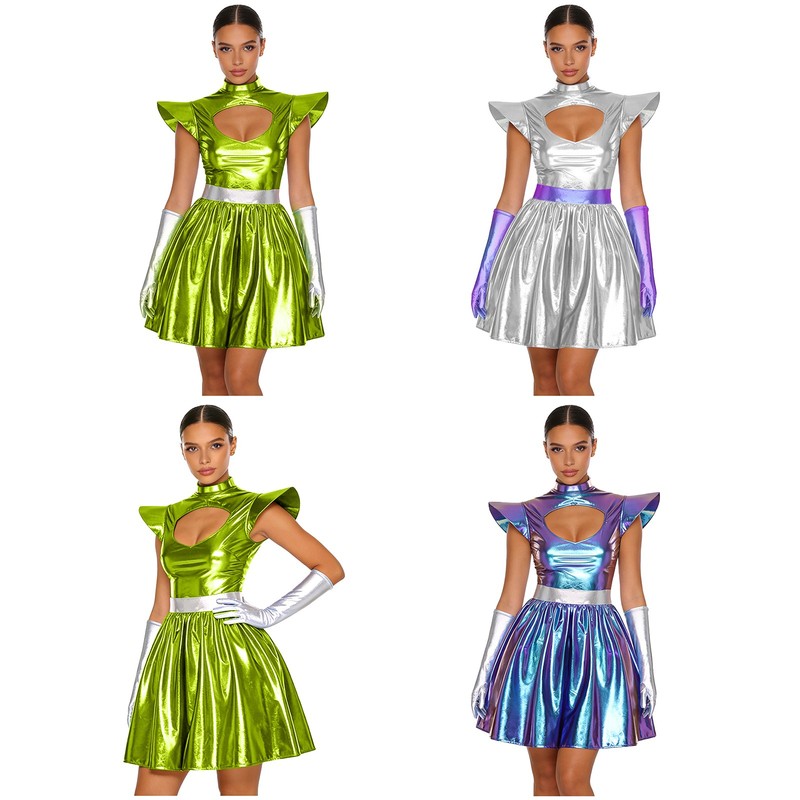 Made from a blend of PU and polyester, the bodysuit is not only shiny but also flexible, providing a comfortable and unrestricted fit.