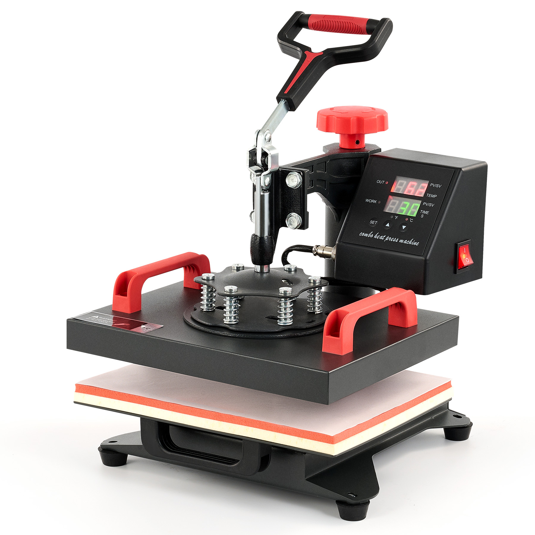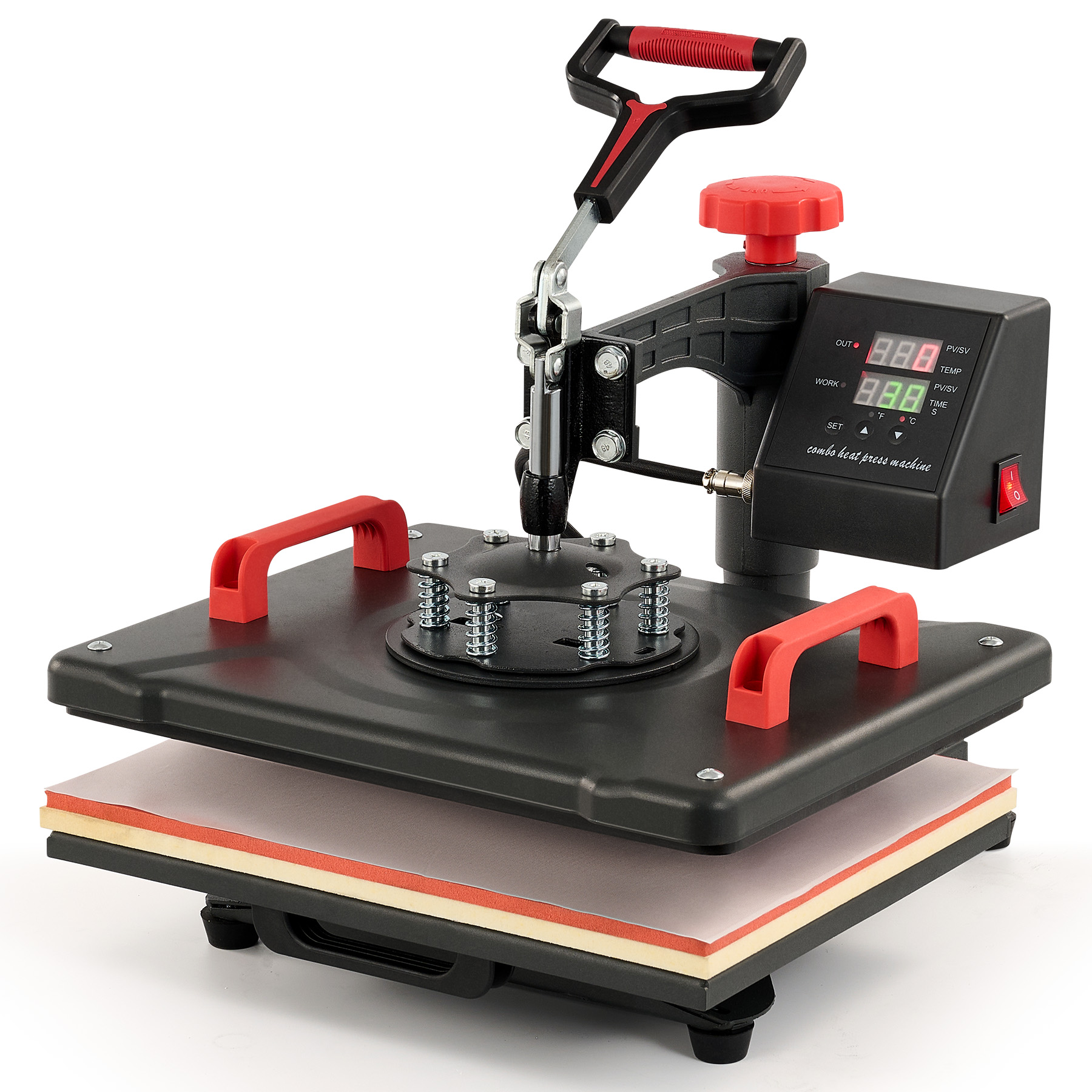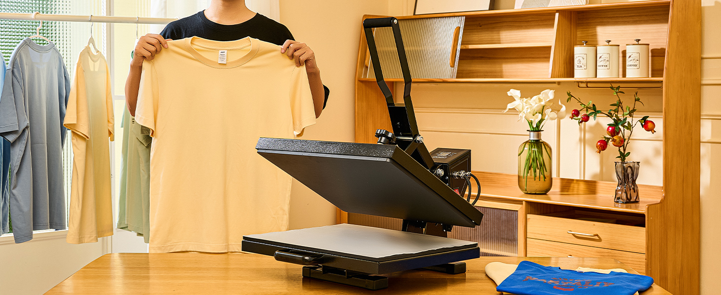Align the platen cover over your design, press it down using the handle, and then start the timer.